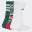 adidas Christmas Graphic Crew Sock 3-Pair Pack su udobne čarape sa veselim prazničnim grafičkim detaljima. Pružaju postavljenu penu za dodatnu udobnost i čvrsto prianjanje zahvaljujući crew dužini. Ikonična 3-Bar adidas marka dodaje klasičan sportski stil, dok reciklirani materijali čine ove čarape održivim izborom za svakodnevnu upotrebu.