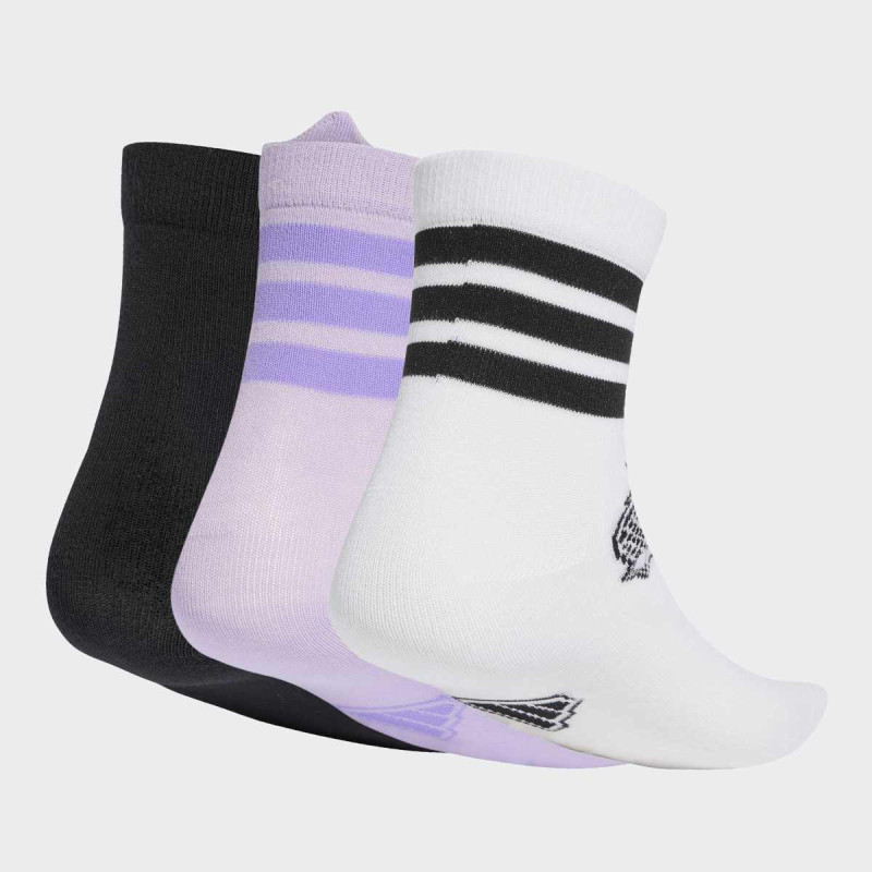 Bubbles 3 Pairs Per Pack Socks Kids su čarape za decu koje kombinuju udobnost, stil i održivost. Mekane i rastegljive, prianjaju uz stopala dece, pružajući udobnost tokom celog dana. Razigrani grafički detalji u više boja čine ih zabavnim i privlačnim. Idealan izbor za svakodnevnu upotrebu, školu, sport ili igru na otvorenom, dok Better Cotton i reciklirani materijali pokazuju adidasovu posvećenost održivosti.