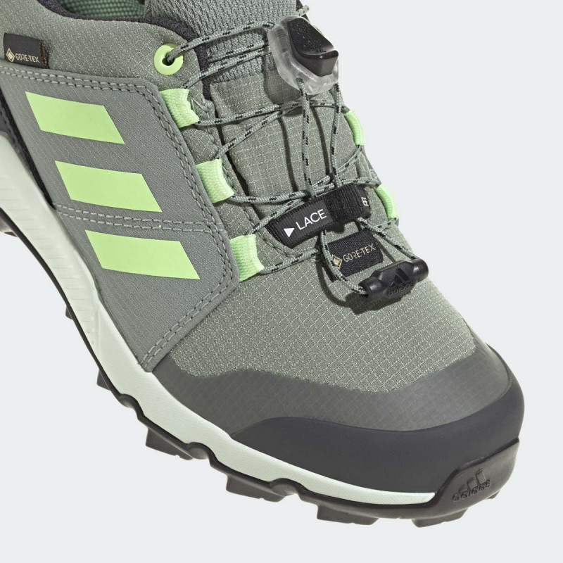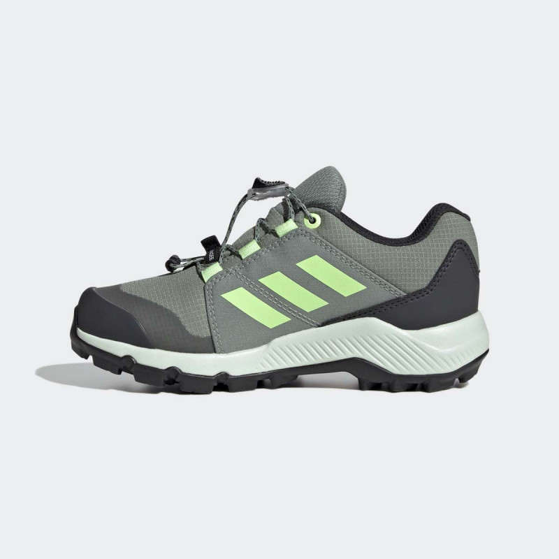 Opis: Terrex GTX K su savršene planinarske cipele za decu koja vole da istražuju prirodu. Ove cipele kombinuju visoku funkcionalnost sa udobnošću i stilom. GORE-TEX membrana osigurava da noge ostanu suve čak i u mokrim uslovima, dok lagana EVA sredina pruža udobnost tokom celodnevnih avantura. Gornji deo od ripstop materijala i modelovani zaštitnik prstiju dodaju izdržljivost, dok Continental™ Rubber đon nudi vrhunski prianjanje na svim vrstama terena. Sistem brzog vezivanja omogućava lako obuvanje i brzo podešavanje. Sa ovom obućom, deca mogu uživati u planinarenju bez brige o mokrim nogama.