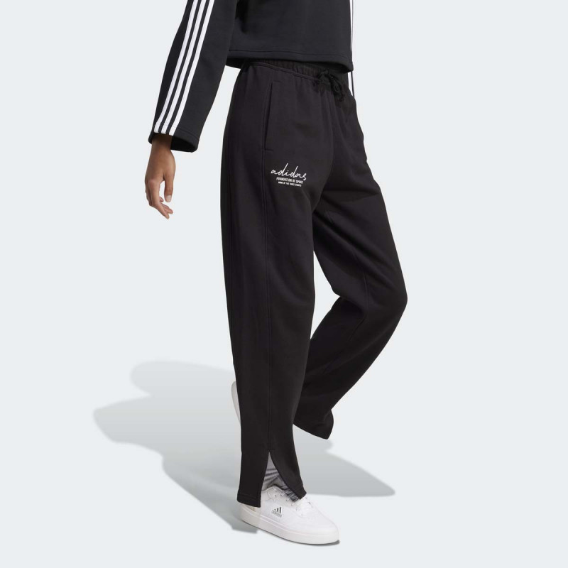 Ove ženske pantalone sa ravnim nogavicama donose spoj udobnosti i stila. Izrađene su od 100% pamuka, koristeći French Terry tkaninu koja pruža mekoću i udobnost. Visoki struk i širok kroj omogućavaju lagano nošenje, dok bočni razrezi na nogavicama dodaju moderni, elegantni izgled. Silikon aplikacija sa izbočenim logotipom adidas pruža prepoznatljiv sportski pečat, dok elastičan pojas sa vezicom omogućava savršeno prilagođavanje. Ovaj proizvod je deo adidas-ove Better Cotton inicijative, koja podstiče održivo gajenje pamuka. Savršene su za svakodnevne aktivnosti, treninge ili opuštanje kod kuće.