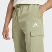 Adidas Essentials Fleece Regular Tapered Cargo donji deo je idealan izbor za opuštanje kod kuće ili na zimskim šetnjama. Kombinacija 70% pamuka i 30% recikliranog poliestera donosi udobnost, toplinu i ekološku odgovornost. Ovaj donji deo ima elastičan pojas sa trakama za podešavanje, sužene nogavice i bočne džepove za praktičnost. Sa malim Performance logotipom na levoj nozi, ovaj donji deo spaja funkcionalnost i stil. S idealnim odnosom između komfora i praktičnosti, savršen je za sve koji žele jednostavan, a moderni izgled.