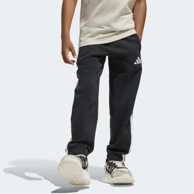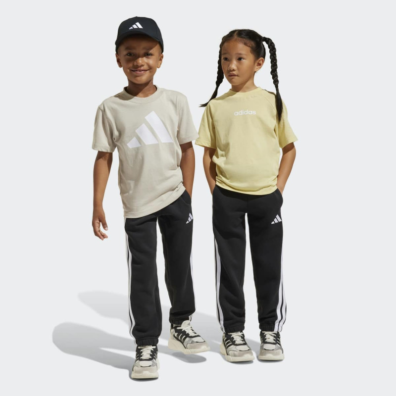 Ovi Essentials joggers za decu kombinuju udobnost, svestranost i održivost. Napravljeni su od mekane fleece tkanine koja greje i pruža prijatan osećaj na koži, dok regular fit kroj i elastičan pojas sa drawcordom omogućavaju lako oblačenje i savršeno prijanjanje. Klasične 3-Stripes sa strane i mali embroidered 3 Bar logo daju prepoznatljiv adidas sportski detalj. Idealni su za školu, igru ili vikend avanture – jednostavni, moderni i praktični, a napravljeni su u delu od recikliranih i obnovljivih materijala za održiviju budućnost.