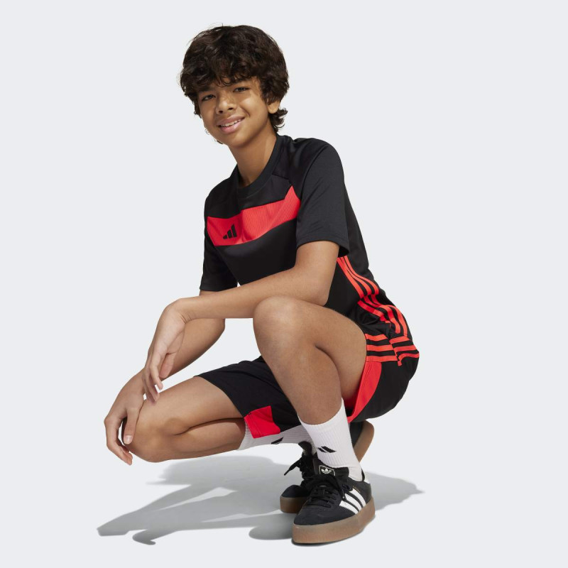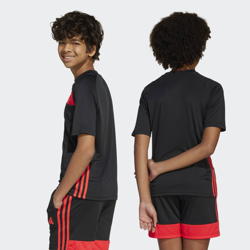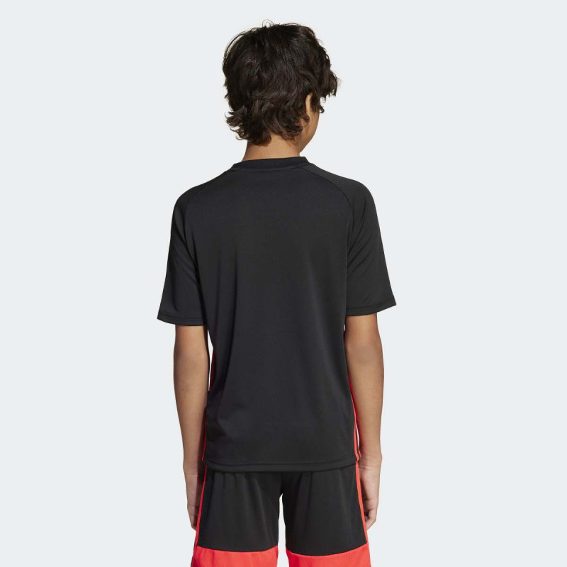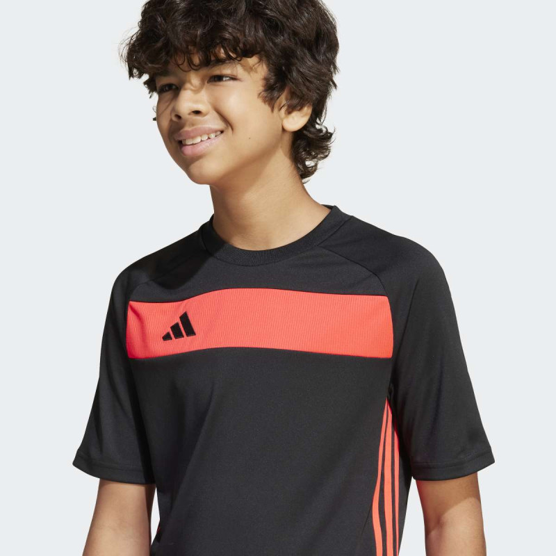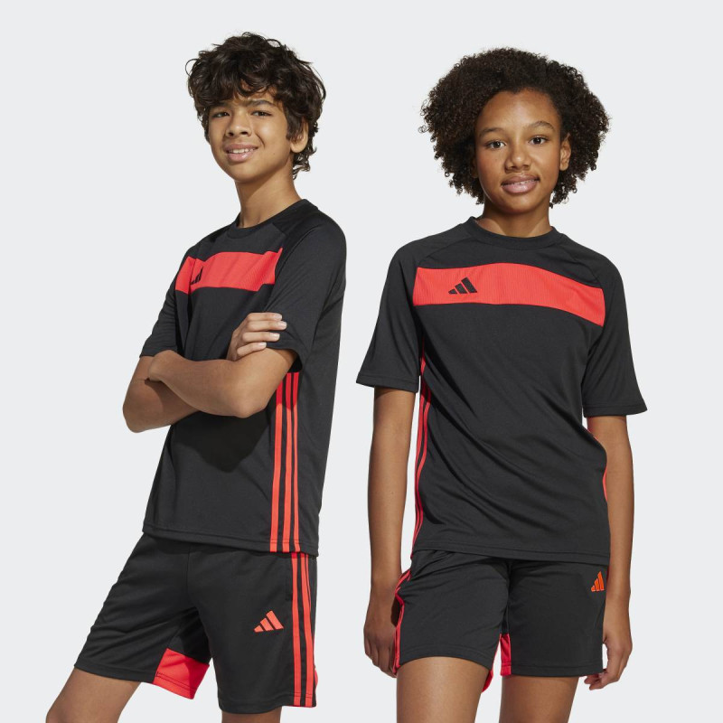 adidas Tiro 25 Essentials Jersey Kids je dečiji dres kratkih rukava inspirisan fudbalom, napravljen za udobnost u pokretu i sportski stil svaki dan. Mekan i lagan materijal pruža prijatan osećaj, dok regular fit omogućava slobodu kretanja. Klasičan Tiro dizajn sa 3-Stripes detaljima sa strane i vezenim adidas logom daje autentičan sportski izgled, bilo da se nosi na terenu ili u gradu.