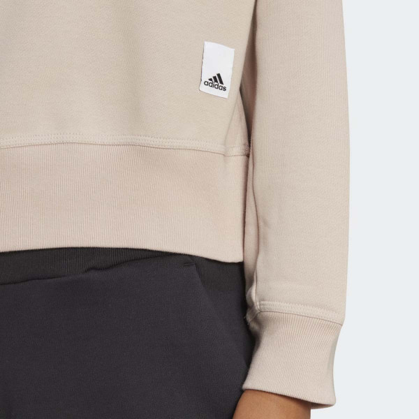 adidas Lounge Fleece Sweatshirt je udoban, opušteni duks koji je savršen za svakodnevno nošenje. Napravljen od mešavine pamuka i recikliranog poliestera, pruža prijatan osećaj težine, a njegov kroj omogućava opušteno nošenje bilo uz suknju ili džins. Ovaj model dolazi u boji Wonder Taupe i poseduje mali logo u obliku Badge of Sport. Sa svojim bomberskim krojem i ribanim okovratnikom, ovaj duks je dizajniran za udobnost i stil, savršen za opuštanje ili izlazak s prijateljima.