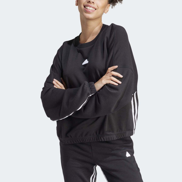 Opis proizvoda: Ovaj Express All-Gender Anti-Microbial Sweatshirt donosi jednostavan, ali izražajan dizajn sa tri-stripes detaljima koji se pojavljuju kada pokažete svoje najbolje pokrete. Izrađen od mekanog francuskog frotira, ovaj duks pruža udobnost kroz svaki pokret, bilo da ste na treningu ili jednostavno u opuštenom izlasku. Široki kroj i elastični manžeti pružaju slobodu kretanja, dok visokokvalitetni materijali čine da se osećate prijatno, ali i odgovorno prema okolini, jer je proizveden sa minimalno 70% recikliranih i obnovljivih materijala.