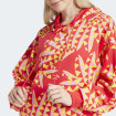 Opis proizvoda: Adidas x FARM Rio duks donosi jedinstven stil inspirisan brazilskim dizajnom. Printovi u jarkim bojama i teksturalnim efektima podsećaju na kaleidoskop i sunčevu svetlost, dok boje i oblici stvaraju živahnu energiju. Fit je širok, sa spuštenim ramenima i prostranom kapuljačom, što čini duks udobnim za svakodnevne aktivnosti i treninge. Napravljen od recikliranih materijala, ovaj duks pomaže u smanjenju otpada i zavisnosti od ograničenih resursa, te je ekološki odgovoran izbor.