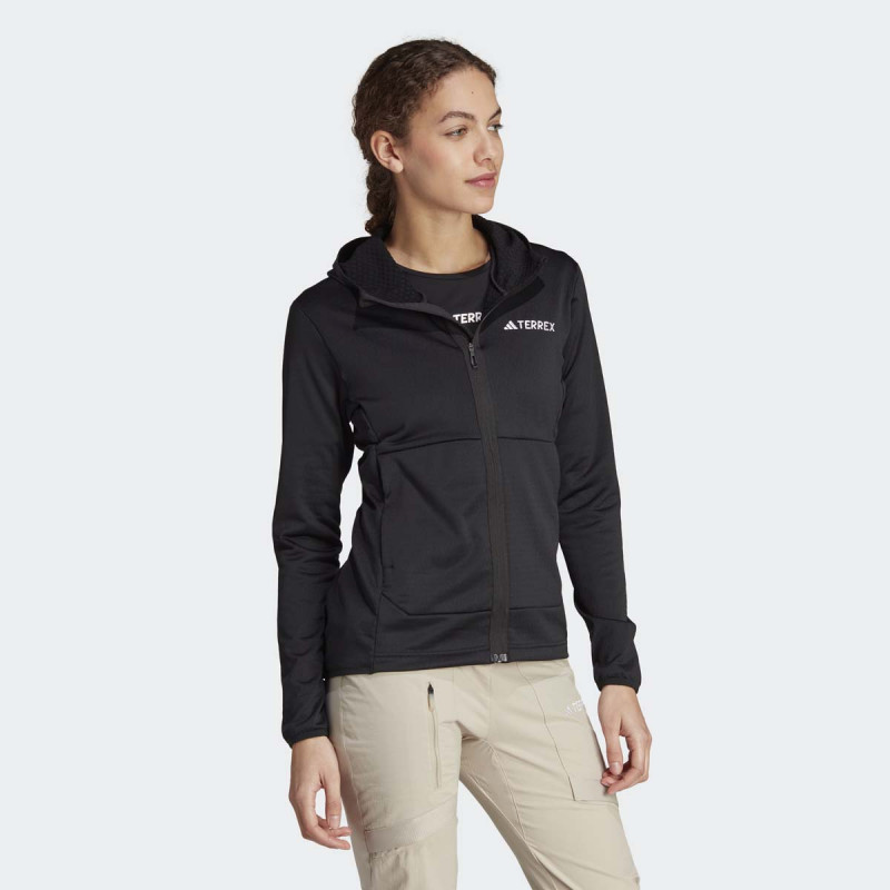 adidas Terrex Xperior Light Fleece Hooded Jacket je savršen saputnik za sve ljubitelje prirode. Ova slim-fit jakna dizajnirana je za planinarenje, ali je dovoljno svestrana da je možete nositi i tokom drugih aktivnosti na otvorenom. Napravljena je od 94% recikliranog poliestera i 6% elastana, pružajući kombinaciju održivosti i slobode pokreta.