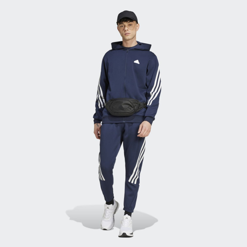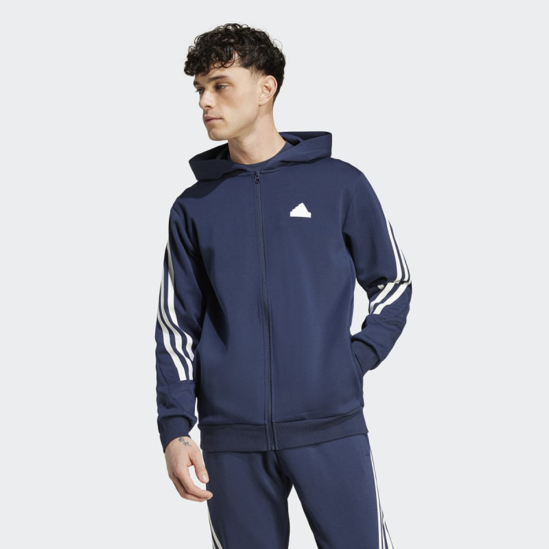 Future Icons 3-Stripes Full-Zip Hoodie je moderan duks sa punim patentom, koji spaja sportsku funkcionalnost i udobnost. Ovaj model, napravljen od 64% pamuka i 36% recikliranog poliestera, pruža savršenu kombinaciju udobnosti i ekološke odgovornosti. Sa ikoničnim 3-stripes trakama koje se prostiru od leđa ka prednjem delu, ovaj džemper donosi savremeni dizajn sa klasičnim elementima. Ribane manžetne i kapuljača čine ga savršenim za svaku priliku, bilo da se koristi kao deo sportske opreme ili svakodnevne garderobe.