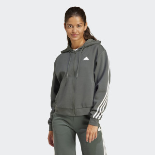 Široka ženska dukserica sa rajsferšlusom od mešavine pamuka i recikliranog poliestera, sa ikoničnim adidas tri pruge oko rukava. Napravljena je od najmanje 70% recikliranih i obnovljivih materijala. Ima podesivu kapuljaču, bočne džepove, rebraste manžete i donji rub. Idealna za sport, trening i slobodno vreme.