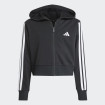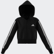 Essentials Full Zip Hoodie za devojčice kombinuje udobnost i stil u jednom. Napravljena od mešavine pamuka i recikliranog poliestera, ova skraćena dukserica pruža mekan osećaj na koži i optimalnu toplinu zahvaljujući kapuljači i rebrastim manžetnama. Regular fit omogućava slobodu pokreta, dok prednji rajsferšlus olakšava oblačenje i svlačenje. Moderan dizajn sa prepoznatljivim 3 prugama i vezenim detaljima čini ovu duksericu idealnom za sportske aktivnosti i svakodnevno nošenje. Proizvod je izrađen sa najmanje 70% recikliranih i obnovljivih materijala, čineći ga održivim izborom.