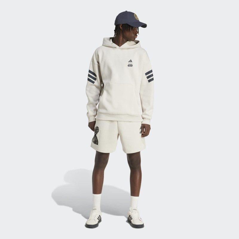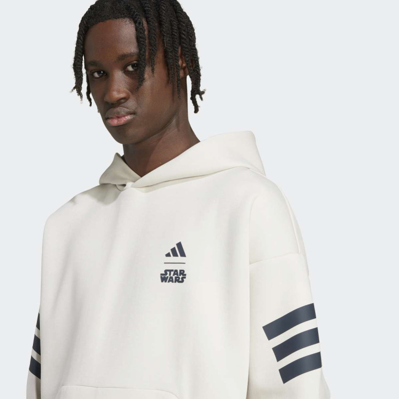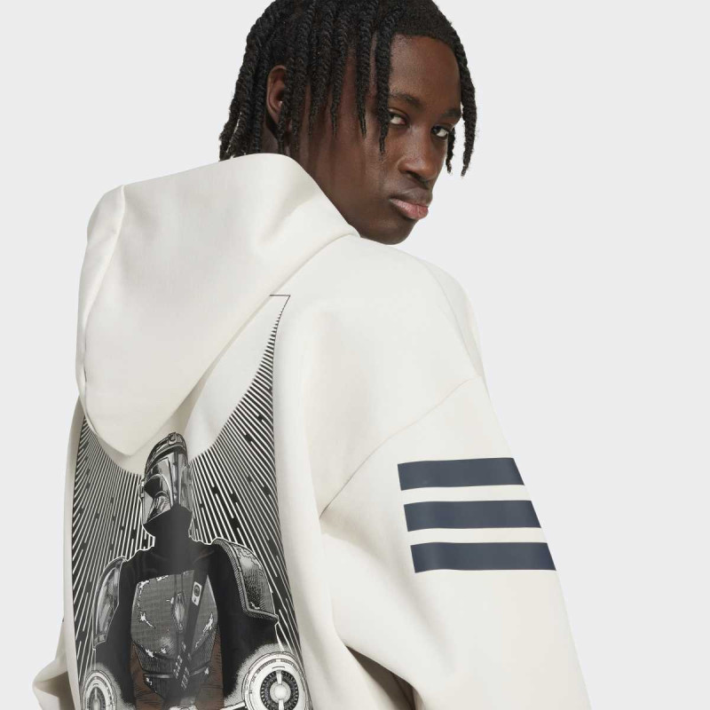Adidas Star Wars™ The Mandalorian™ Hoodie je muški duks koji spaja udobnost i prepoznatljiv stil inspirisan kultnom serijom. Mekan pleteni materijal pruža prijatan osećaj tokom celog dana, dok klasičan kroj i kengur džep doprinose praktičnosti. Upadljiva grafika na leđima ističe fandom, a upotreba recikliranih i obnovljivih materijala čini ovaj model odgovornijim izborom za svakodnevno nošenje.