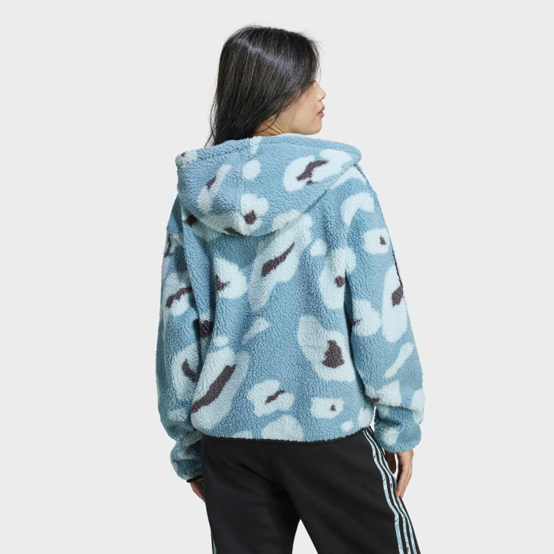 Ovaj hoodie kombinuje udobnost, toplinu i smeli dizajn. adidas Essentials 3-Stripes Animal Print High Pile Full-Zip Hoodie je izrađen od mekog, recikliranog poliestera sa high-pile fleece tkaninom koja pruža toplinu i udobnost, dok loose fit omogućava lako oblačenje i slobodu pokreta. Kontrastne 3-Stripes na rukavima i mali Badge of Sport logo dodaju sportski šik detalj, a upečatljiv animal print osigurava upečatljiv izgled. Ova verzija u saradnji sa FARM brendom donosi dodatnu živost i urbani šarm za jesen i zimu.