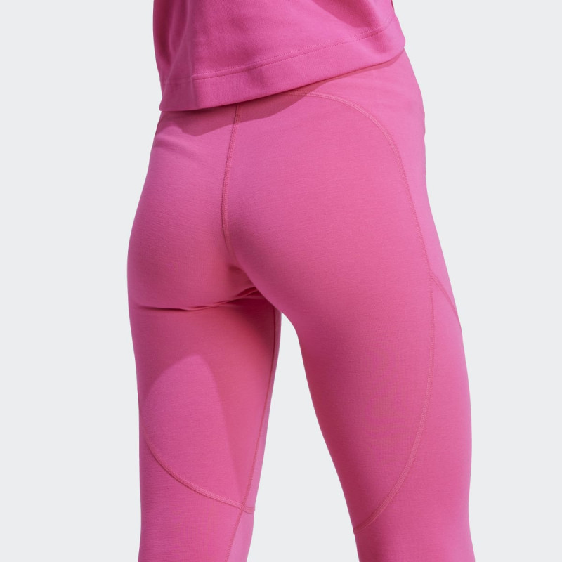 Nema previše helanki za jogu, naročito ako želiš da uključiš sport u svoj svakodnevni ritam. Ove adidas by Stella McCartney 7/8 helanke imaju klasičan kroj i dolaze u jakim, čistim bojama koje naglašavaju siluetu. Materijal koji u značajnoj meri sadrži reciklirani poliester i modal, prilagođava se svakom pokretu, istezanju i uvijanju, dok AEROREADY tehnologija održava kožu suvom i svežom. Sa ovim helankama možeš lako od joge preći na doručak u omiljenom džemperu ili majici. Udobne i funkcionalne, neće te izneveriti.