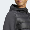 - Materijal: Spoljni deo jakne je napravljen od 100% recikliranog poliestera, dok je punjenje od 80% patke dole i 20% perja.
