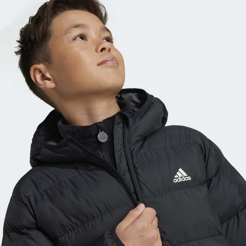 Adidas dečija sinteticka jakna pruža udobnost i zaštitu od hladnoće. Lagana izolacija od sintetičkog perja omogućava toplotu bez prekomerne težine. Jakna je idealna za aktivnosti na otvorenom tokom hladnijih meseci, kao što su trening fudbala, šetnje sa psom ili izlazak sa prijateljima. Sa reflektivnim detaljima, omogućava bolju vidljivost u uslovima smanjenog svetla, dok je izrađena od 100% recikliranih materijala, čime se smanjuje uticaj na životnu sredinu.