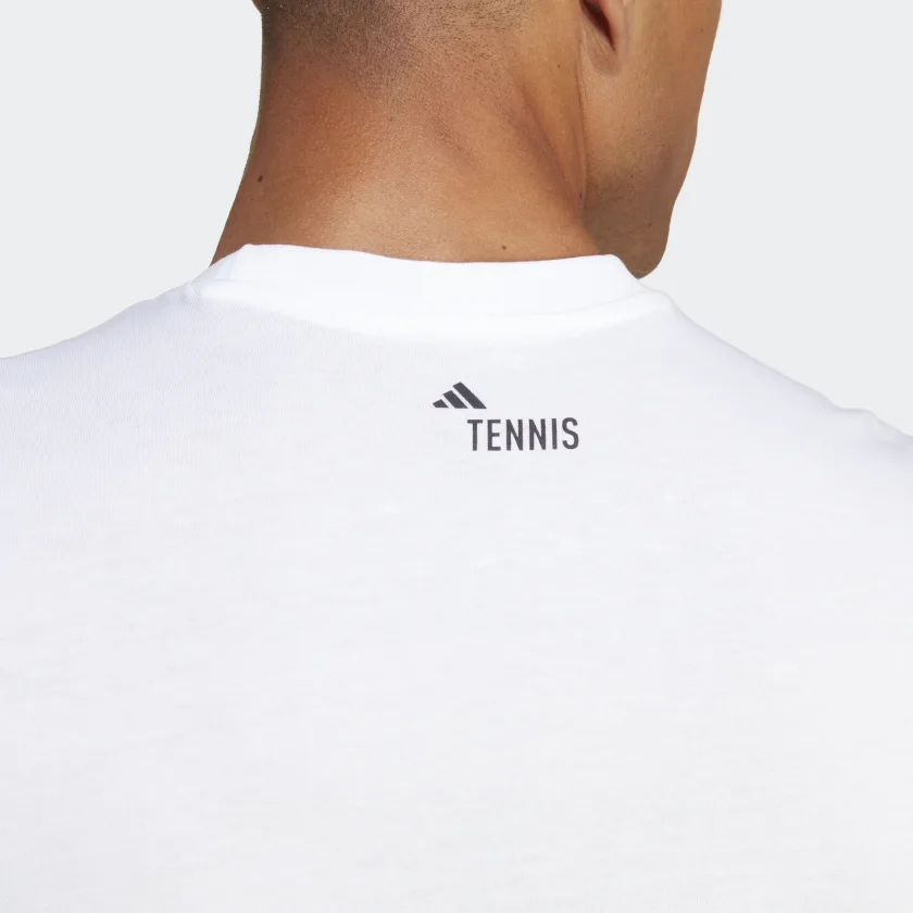 Ova adidas majica od mešavine pamuka prikazuje grafiku vezanu za tenis na grudima. Njegova mekana, jednostruka konstrukcija dresa i AEROREADY koji odvode vlagu omogućiće vam udobnost na terenu i van njega.