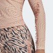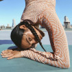 - Ova dugačka joga majica odlikuje se odvažnim printom inspirisanim muzikom i dizajnirana je za festivalske jogije koji vole da spoje jogu, muziku i kulturu. Napravljena je od prozračnog mrežastog materijala, što omogućava lakoću i ventilaciju tokom vežbanja. Mikronabori na rukavima i otvori za palčeve daju joj mladalački i zabavan izgled. Može se kombinovati sa drugim komadima u kolekciji kako bi se stvorili različiti stilovi – od smirenih tonova do smelih kombinacija.