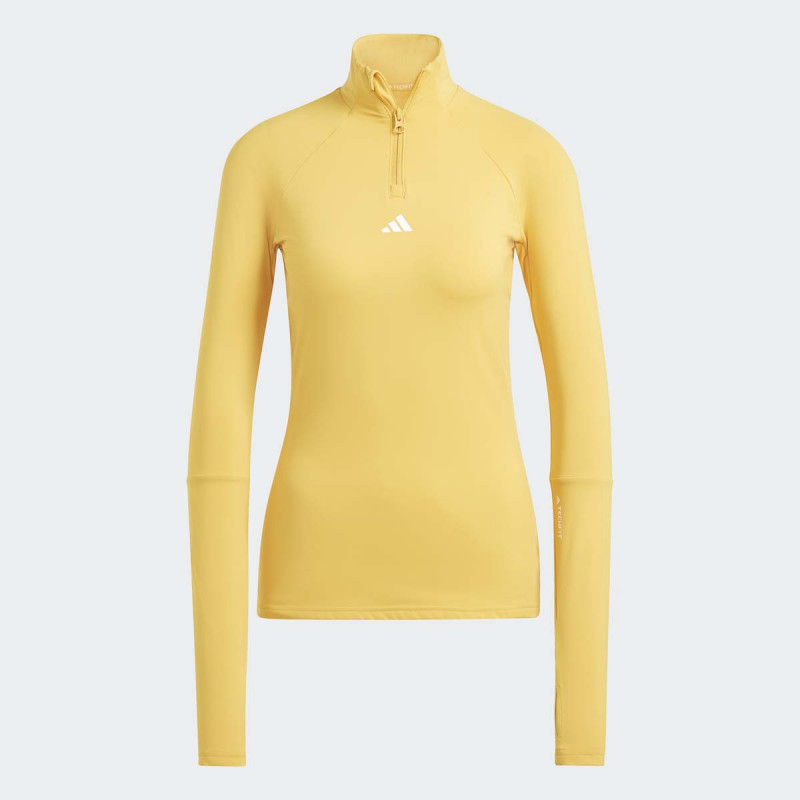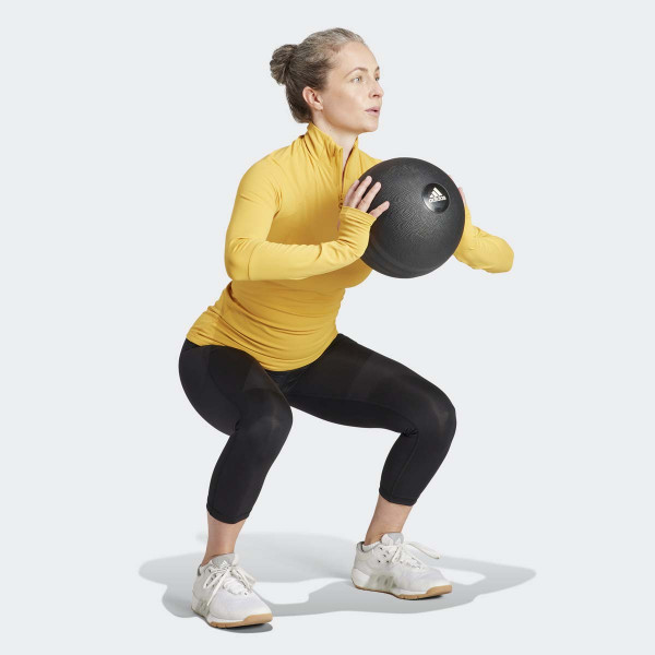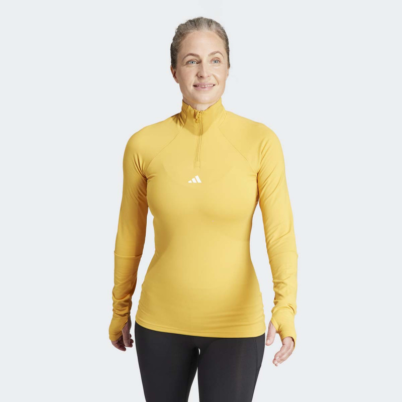 OPIS: Ovaj adidas dugi rukav je savršen za žene koje žele da ostanu tople i suve tokom treninga, bez obzira na vremenske uslove. Sa Cold.RDY tehnologijom koja zadržava toplotu i Techfit kompresivnim krojem koji poboljšava snagu i izdržljivost, ovaj top nudi potpuni raspon pokreta i poboljšava performanse. Napravljen od recikliranih materijala, uključujući reciklirani poliester i elastan, ovaj proizvod predstavlja napor za smanjenje plastičnog otpada. Uz četvrtasti zip za lakše oblačenje i manžetne sa rupicama za palčeve, idealan je za slojevanje ili nošenje samostalno tokom svih vrsta treninga.