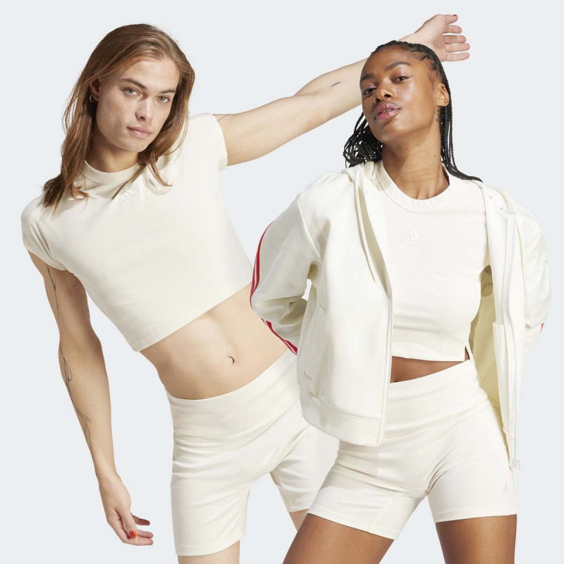 Opustite se uz luksuznu udobnost ove kratke majice iz Adidas kolekcije. Rastegljiva ribana tkanina će se savršeno prilagoditi vašem telu. Idealno za kombinovanje sa visokim strukom, bilo da se opuštate kod kuće ili izlazite napolje.