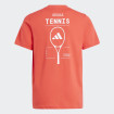 Tennis Category Graphic T-Shirt za dečake i devojčice je uniseks majica dizajnirana za ljubitelje tenisa. Izrađena je od mekanog single-jersey materijala sa AEROREADY tehnologijom koja upija znoj i održava kožu suvom, od prvog do poslednjeg servisa. Bold grafički print na grudima i dodatni print na leđima donose energičan i sportski izgled. Idealan je za trening, ali i za svakodnevno nošenje, kombinujući udobnost i stil.