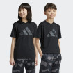 Dečija Train Essentials Seasonal majica sa AEROREADY tehnologijom kombinuje udobnost, stil i funkcionalnost. Napravljena je od materijala koji sadrži reciklirani poliester, pružajući mekan osećaj na koži i prozračnost tokom aktivnosti. Bold camo print i veliki performance logo dodaju sportski i moderan izgled. Majica omogućava slobodu pokreta, odvodi vlagu i idealna je za trening, igru ili svakodnevne aktivnosti.