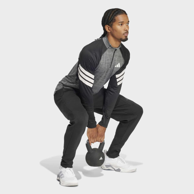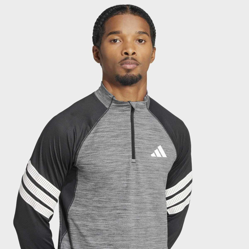 Icon 3-Stripes 1/4-Zip Long-Sleeve Top je majica dugih rukava sa četvrtastim zipom i slim fit krojem, dizajnirana za treninge i visoko intenzivne aktivnosti. CLIMACOOL tehnologija upija i raspršuje znoj, održavajući telo hladnim i suvim, dok perforirane 3 pruge daju moderan izgled. Prošireni zadnji rub i bočni prorezi omogućavaju slobodu pokreta, a reciklirani materijali smanjuju uticaj na životnu sredinu. Idealna je za treninge u teretani, trčanje ili HIIT vežbe, kombinujući performanse i stil.