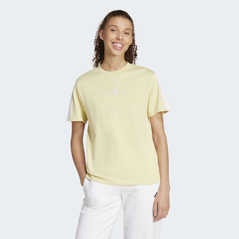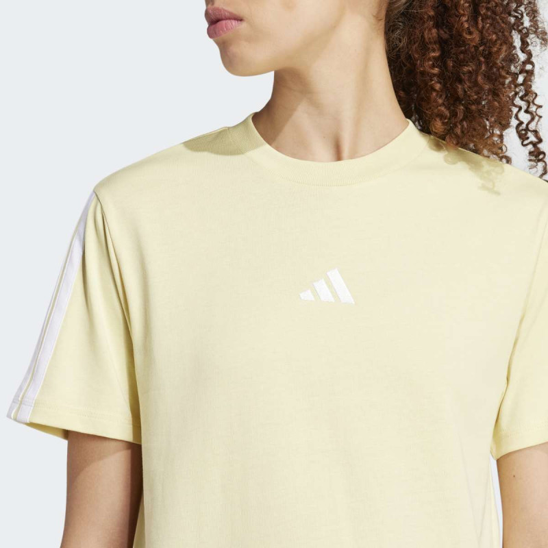Essentials 3-Stripes Cotton T-Shirt je udobna i svestrana majica za svakodnevno nošenje. Mekani single jersey pamuk pruža lagan i prijatan osećaj na koži, dok prepoznatljive tri pruge na rukavima i vezeni 3 Bar logo daju klasičan adidas sportski izgled. Idealna je za kombinovanje sa omiljenim donjim delom, savršena za opuštene i aktivne dane.