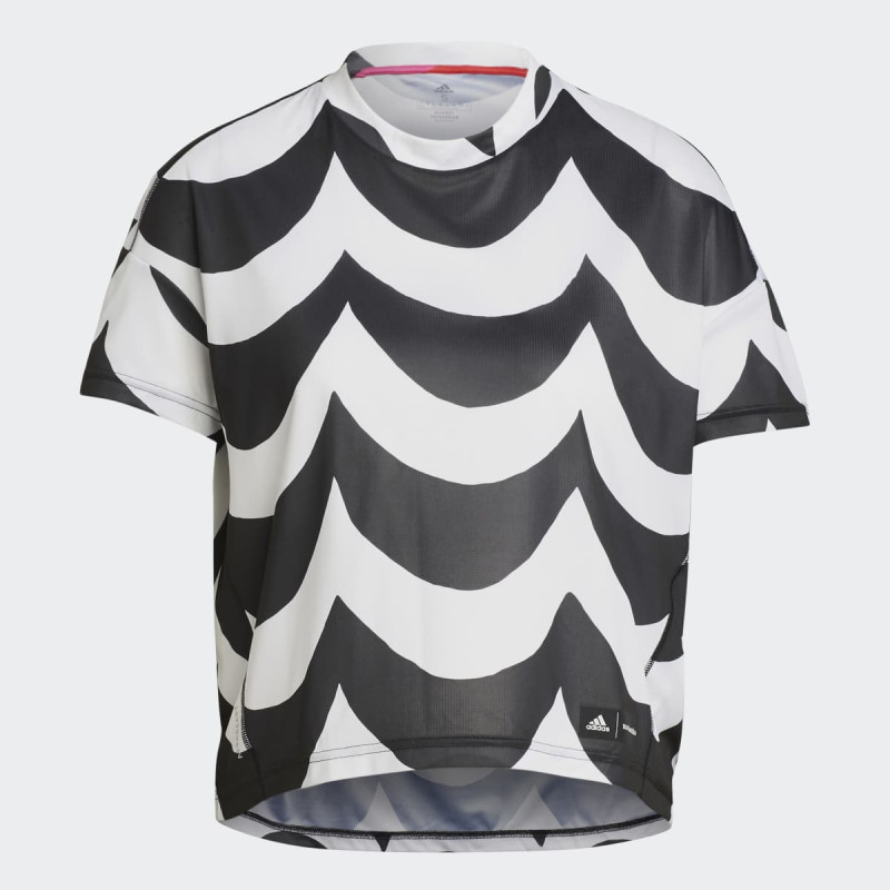 Ova ženska adidas majica za trčanje je rezultat saradnje sa finskim brendom Marimekko, poznatim po smelim i upečatljivim dezenima. Loose fit omogućava slobodno kretanje, dok AEROREADY tehnologija održava telo suvim tokom aktivnosti. Primegreen materijal pokazuje posvećenost održivosti. Idealan izbor za trčanje, trening i svakodnevnu aktivnost.