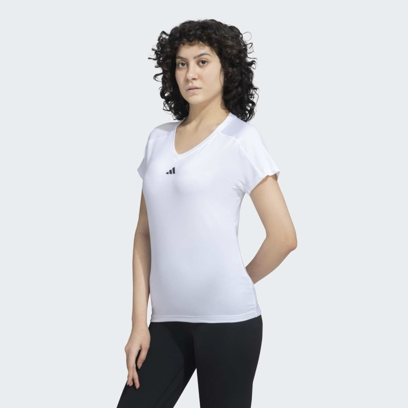 Adidas Aeroready Train Essentials Minimal Branding V-neck T-shirt je dizajniran za žene koje traže jednostavan, ali funkcionalan trening komad. Slim fit kroj i strateški postavljeni šavovi omogućavaju slobodno kretanje bez ometanja, dok AEROREADY tehnologija održava kožu suvom tokom vežbanja. Minimalni 3-Bar logo na grudima dodaje suptilan detalj. T-shirt je izrađen delimično od recikliranih materijala, čineći ga ekološki odgovornim izborom za vašu sportsku garderobu.