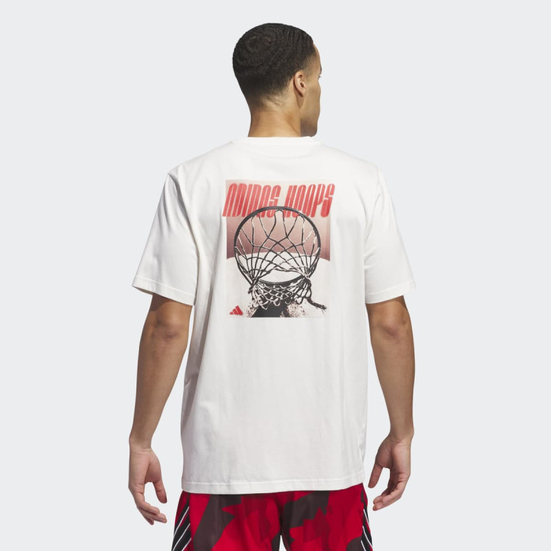 Adidas Hoops Graphic Tee je muška košarkaška majica koja kombinuje udobnost i stil na terenu. Mekana single jersey tkanina omogućava prozračnost i prijatan osećaj na koži, dok loose fit pruža potpunu slobodu pokreta za crossover driblove, pasove i šut. Upadljiva grafika naglašava sportski karakter, a upotreba Better Cotton čini ovu majicu održivim izborom za sve ljubitelje košarke.