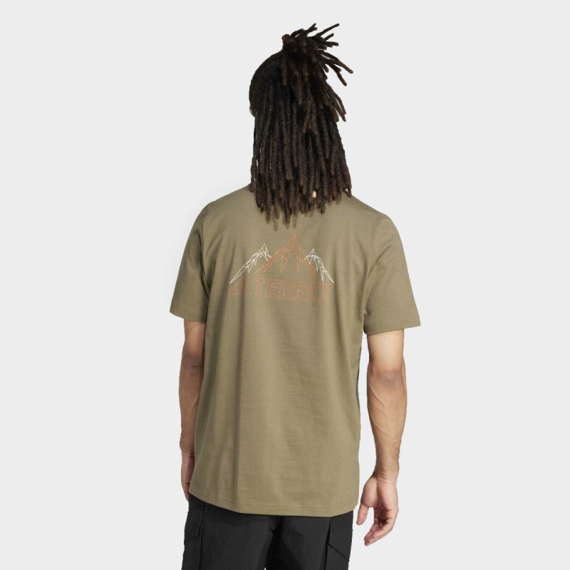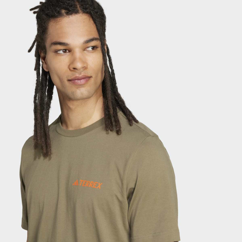 Terrex Graphic T-Shirt kombinuje stil i funkcionalnost za ljubitelje prirode. Lagana single jersey tkanina pruža udobnost tokom celog dana, dok grafički print planine simbolizuje avanturistički duh i povezanost sa prirodom. Regular fit majica je pogodna za sve outdoor aktivnosti i casual nošenje.