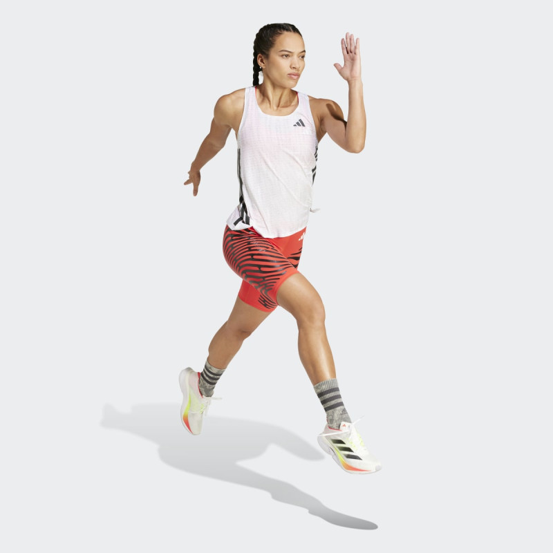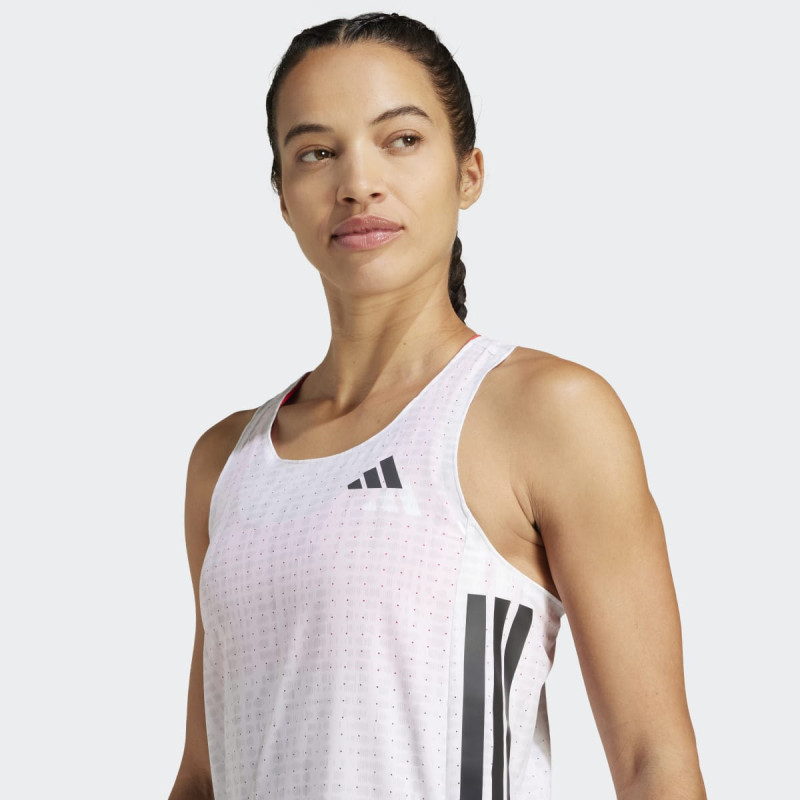 adidas Adizero Running Singlet za žene je ultra-lagan top dizajniran za maksimalnu udobnost i performanse tokom trčanja. Slim fit kroj prati telo i omogućava neometano kretanje, dok perforirani materijal i bočni prorezi omogućavaju optimalnu ventilaciju. Forward-shifted side seams i unutrašnje zaštite od trenja smanjuju iritaciju, a reflektivni detalji i 3-Stripes pružaju prepoznatljiv adidas izgled i sigurnost u uslovima slabog osvetljenja. Idealno za trkače koji žele kombinaciju performansi i održivosti.