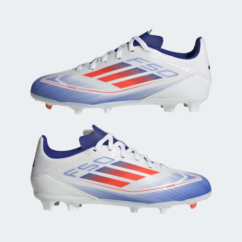 Opis: Adidas F50 LEAGUE FG/MG J kopačke su dizajnirane za mlade fudbalske igrače koji žele da postignu maksimalnu brzinu, agilnost i kontrolu na terenu. Ove kopačke su izuzetno lagane i pružaju visok nivo udobnosti zahvaljujući perforiranoj jezičkoj konstrukciji koja omogućava bolju ventilaciju. Gornji deo od Fiberskin materijala sa Sprintgrid otiskom na prednjem delu stopala omogućava bolje prianjanje i povećanu preciznost pri kontroli lopte.