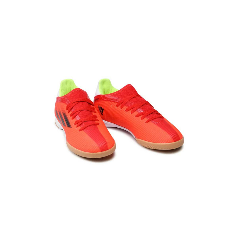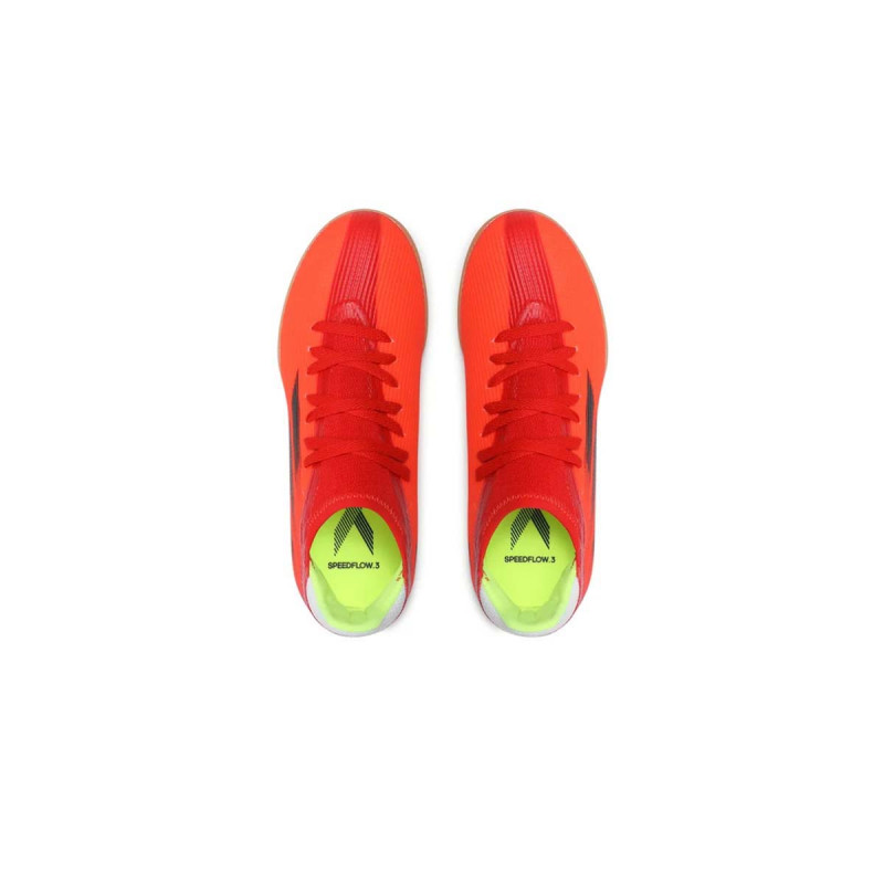 adidas X Speedflow.3 IN J su fudbalske patike koje kombinuju minimalizam i brzinu, pružajući mladim fudbalerima udobnost i performanse na unutrašnjim terenima. Gornji deo je napravljen od laganog mrežastog tekstila, što omogućava bolji kontakt sa loptom i lakše pokrete. Lagani gumeni potplat pruža izuzetno prianjanje na ravnim površinama i unutrašnjim fudbalskim terenima, što omogućava brze reakcije i promene pravca.