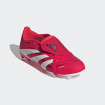 Adidas Predator League FG J su dečje kopačke dizajnirane za igru na čvrstim (firm ground) terenima, napravljene delimično od recikliranih materijala. Hybridfeel gornjište sa 3D teksturom i Strikescale elementima pruža dodatno prijanjanje za precizne i snažne udarce. Prepoznatljiv fold-over jezik stvara glatku površinu za šut, dok specijalizovani đon osigurava stabilnost i pravilan položaj na terenu.