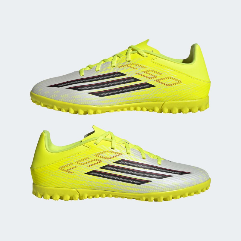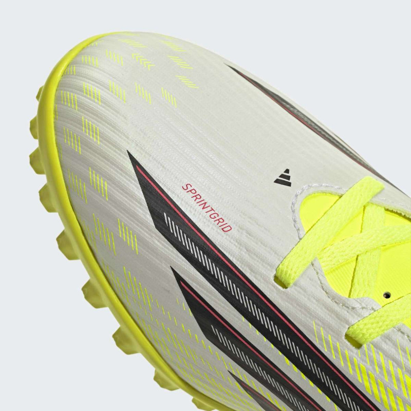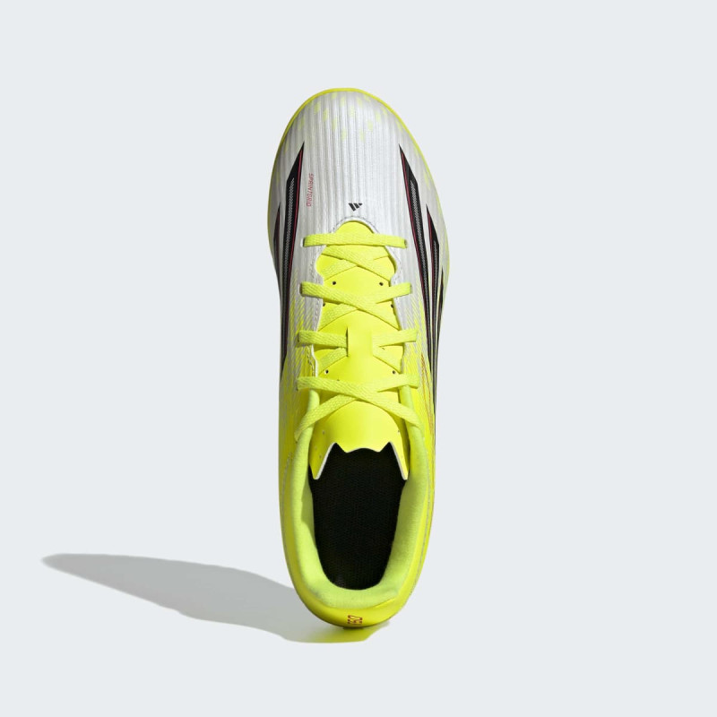 Povećaj brzinu i preciznost na veštačkoj travi uz F50 Club Turf Football Shoes. Ove patike imaju Fiberskin gornji deo sa inženjerskom mrežom i strateški postavljenim 3D linijama za poboljšan dodir lopte i kontrolu igre. Sintetički plutajući jezik sa perforacijama omogućava dodatnu prozračnost i udobnost tokom intenzivnih utakmica. Turf đon pruža savršen grip na Astro Turf i sintetičkim terenima. Dvostruko brendiranje sa 3-Stripes na bočnim stranama i F50 logom na peti čini ih prepoznatljivim i modernim. Patike su delimično napravljene od recikliranih materijala, što ih čini dobrim i za planetu.