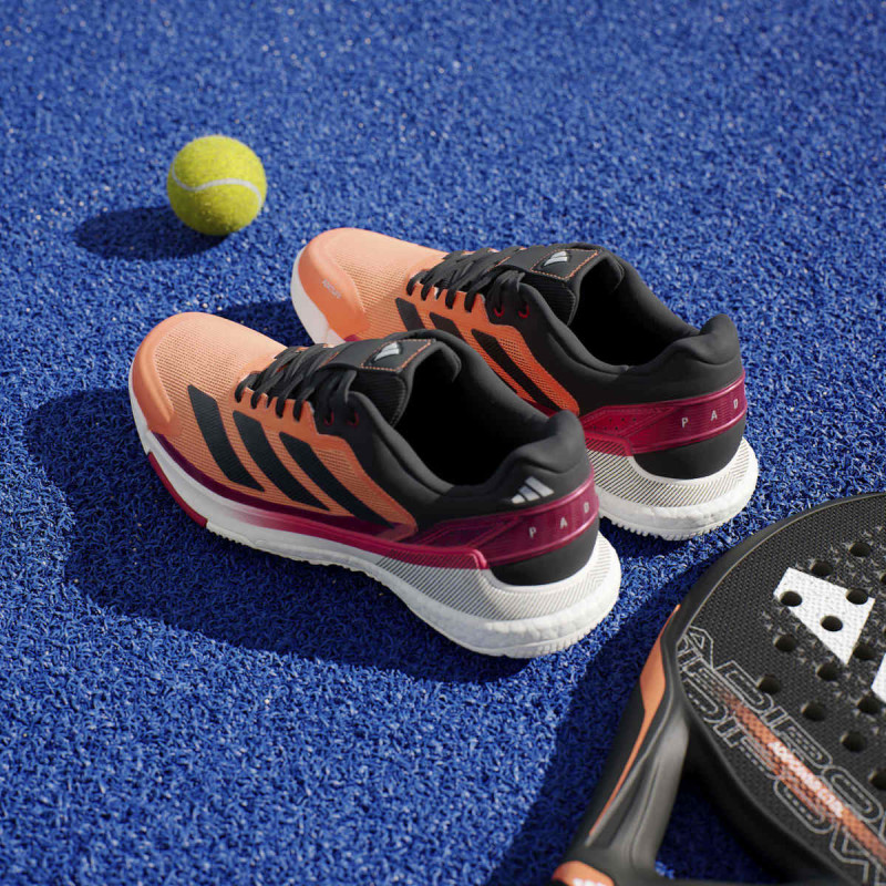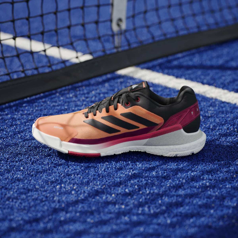Crazyquick Boost Padel M su patike dizajnirane za muškarce koji žele brzinu, agilnost i energiju na padel terenu. Ovaj model kombinuje Boost tehnologiju za eksplozivni odskok i energičan povrat, sa stabilizujućom Sling-frame konstrukcijom koja pruža sigurnost pri brzom lateralnom kretanju. Gornji deo od tekstila i sintetičkih materijala osigurava udobno pristajanje i prozračnost, dok Adituff zaštita na prstima i Adiwear gumeni đon dodaju izdržljivost i grip na više površina. Dizajnirane delimično od recikliranih materijala, ove patike nude performanse i održivost u jednom. Crazyquick Boost M omogućavaju brze rotacije, stabilne pivot pokrete i kontrolisano kretanje, čineći ih idealnim saveznikom za svakog igrača padela.