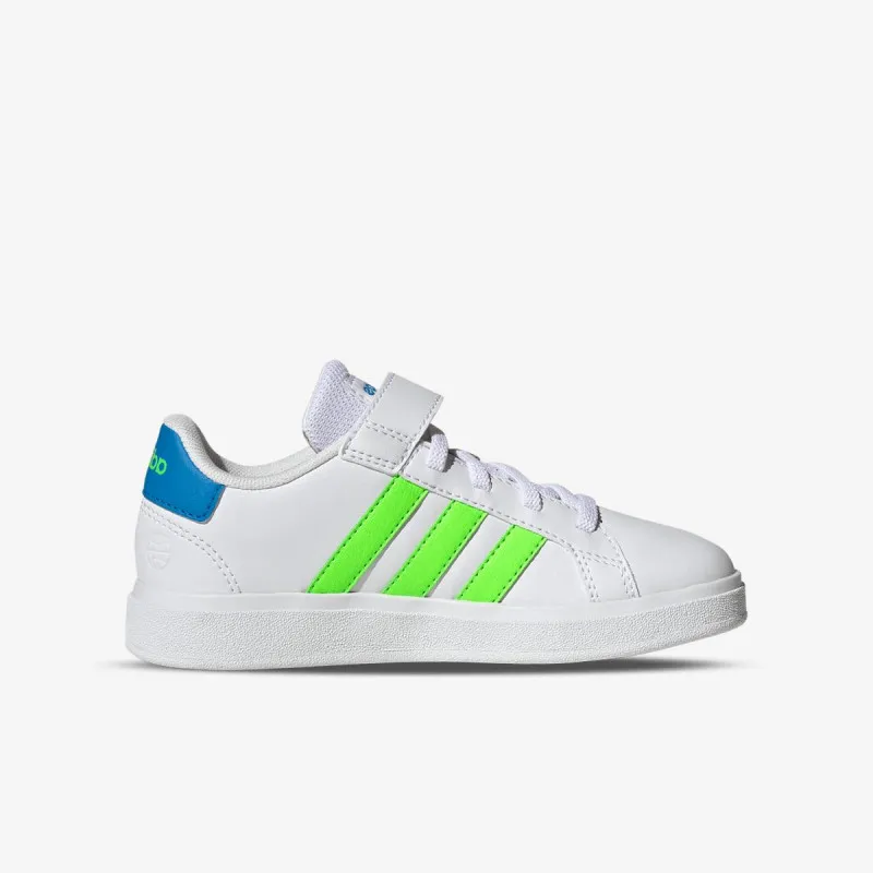 Dečije patike Adidas Grand Court 2.0 donose osveženje klasičnom dizajnu. Napravljen od reciklirane sintetičke kože, ove patike su opremljene elastičnim vezicama i čičak trakama koje olakšavaju obuvanje i prilagođavanje. Gumeni đon pruža udobnost i podršku na raznim površinama, što ih čini savršenim izborom za igru i svakodnevno nošenje. Osim što su funkcionalne, ove patike su takođe deo Adidasove inicijative za smanjenje plastičnog otpada, čime doprinose očuvanju životne sredine.