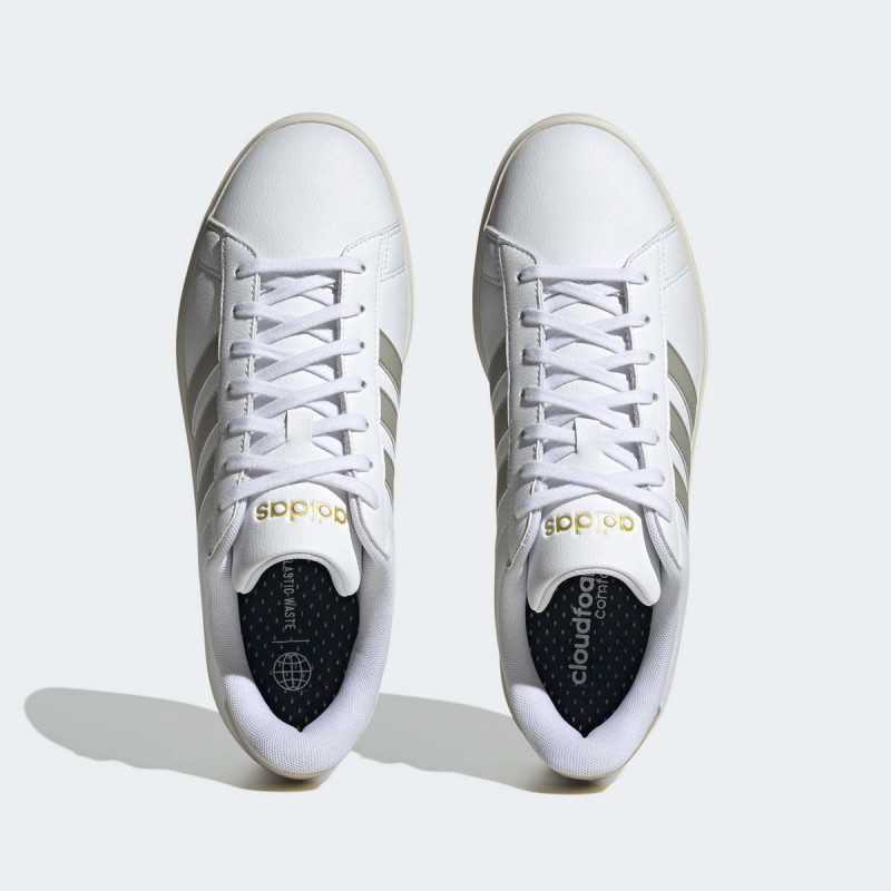 Adidas Grand Court 2.0 patike su inspirisane teniskim stilom i pružaju visok nivo udobnosti zahvaljujući Cloudfoam Comfort ulošku. Sa ikoničnim 3-Stripes dizajnom, ove patike su odličan izbor za svakodnevni život, bilo da idete na trening, na posao ili se opuštate. Gornji deo je izrađen od sintetičke kože, a patike su deo Adidasove inicijative za smanjenje plastičnog otpada, jer sadrže reciklirane materijale.