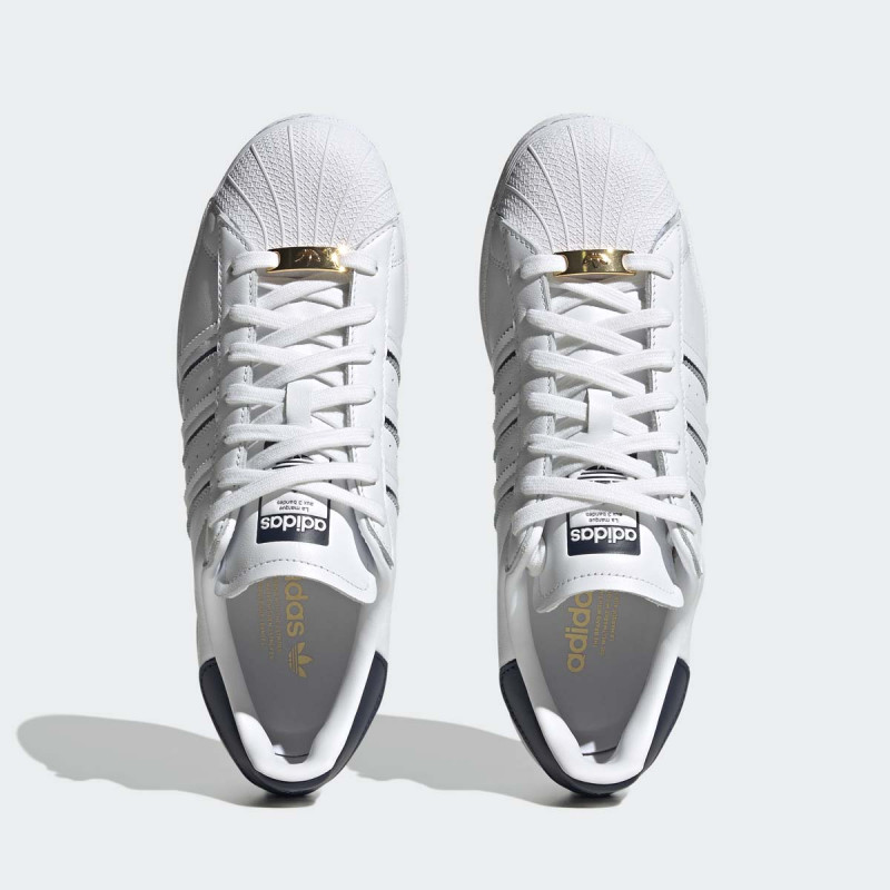 Opis: Ove muške patike donose unapređenu verziju legendarnih adidas Superstar patika sa novim bojama i materijalima. Ikonični shell-toe (gumeni vrh prsta), logo na peti i niski profil ostaju verni originalnom izgledu. Metalik zlatni detalji i složene, zupčaste 3-Stripes trake završavaju izgled.