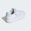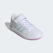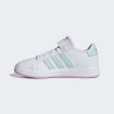 Predstavljamo adidas Grand Court 2.0 EL K patike za decu, u boji Cloud White / Semi Flash Aqua / Bliss Lilac — moderne i udobne patike za dečake i devojčice.