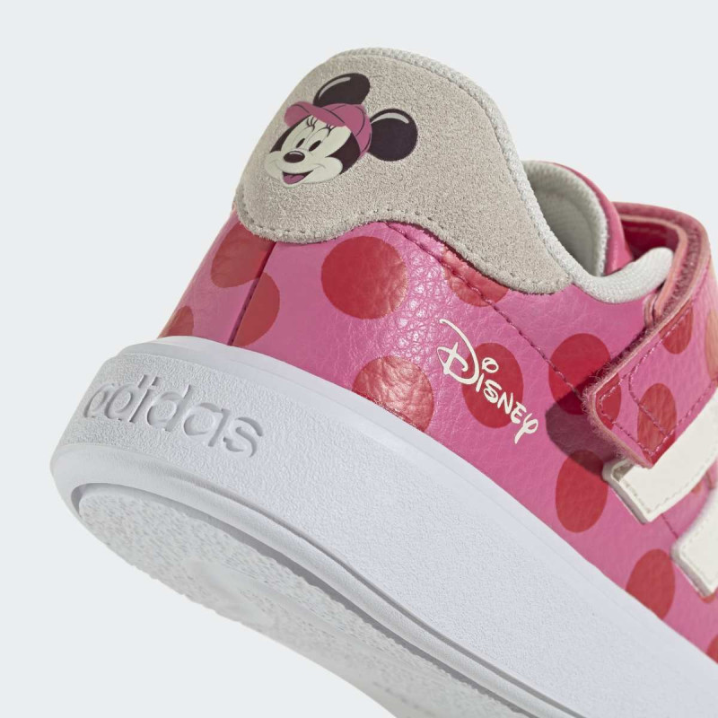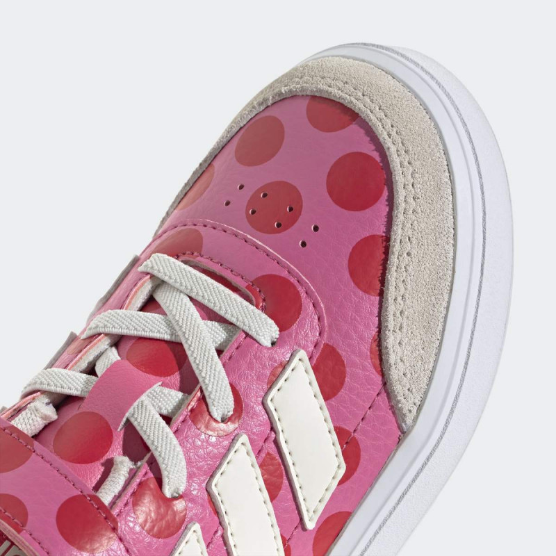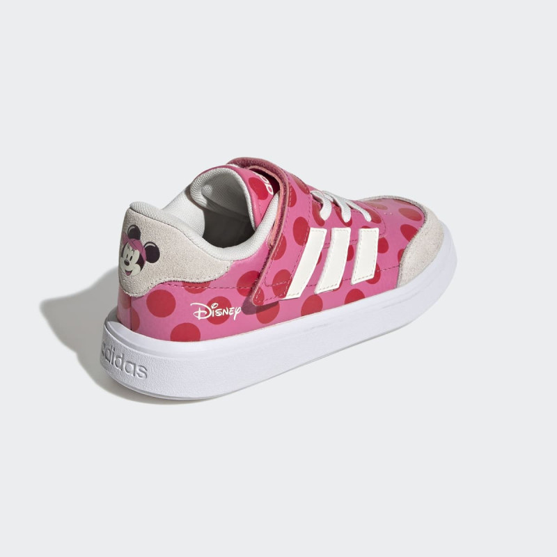 Adidas Disney Minnie Courtblock patike za decu kombinuju zabavu i udobnost u svakom koraku. Gornji deo od kože i sintetičkih materijala sa Minnie Mouse printom i klasičnim tufnicama dodaje šarm i veselje, dok elastične pertle i čičak omogućavaju jednostavno obuvanje. Tradicionalni gumeni cupsole pruža izdržljivost i stabilnost za igru i svakodnevne avanture. Patike su delimično napravljene od recikliranih materijala, čime adidas doprinosi smanjenju otpada i očuvanju resursa. Idealne su za igru na ulici i u zatvorenom.