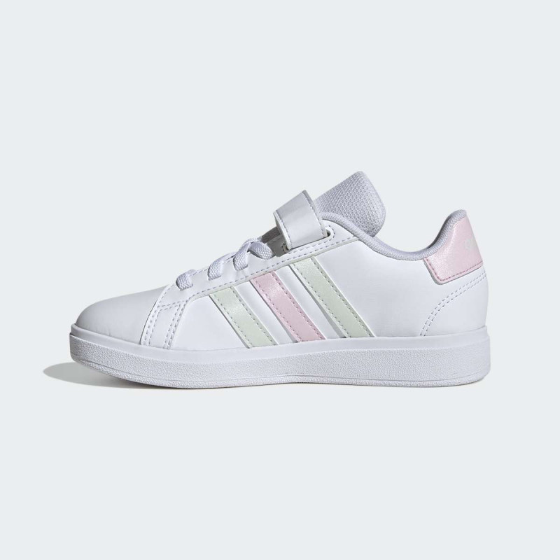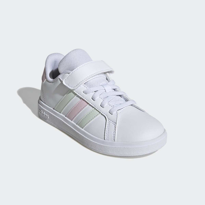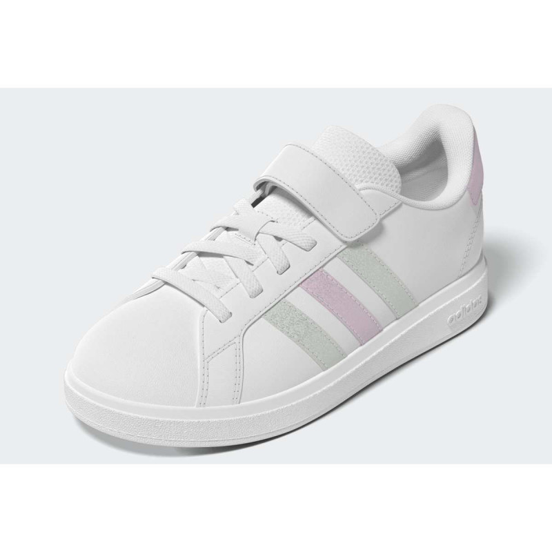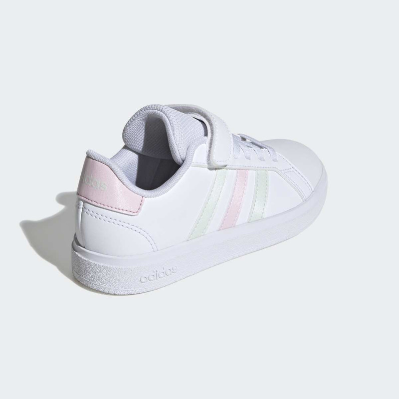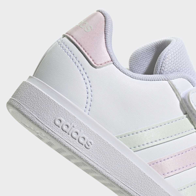 adidas Grand Court 2.0 EL C su uniseks patike za dečake i devojčice, osmišljene za svakodnevnu igru i urbani stil. Lagane i fleksibilne, ove patike omogućavaju deci slobodno kretanje, dok elastične pertle i hook-and-loop traka osiguravaju sigurno i stabilno pristajanje. Gumeni cupsole pruža pouzdan grip za sve aktivnosti na otvorenom ili u zatvorenom, a reciklirani materijali doprinose održivosti. Savršen izbor za aktivne mališane koji žele kombinaciju stila i komfora.