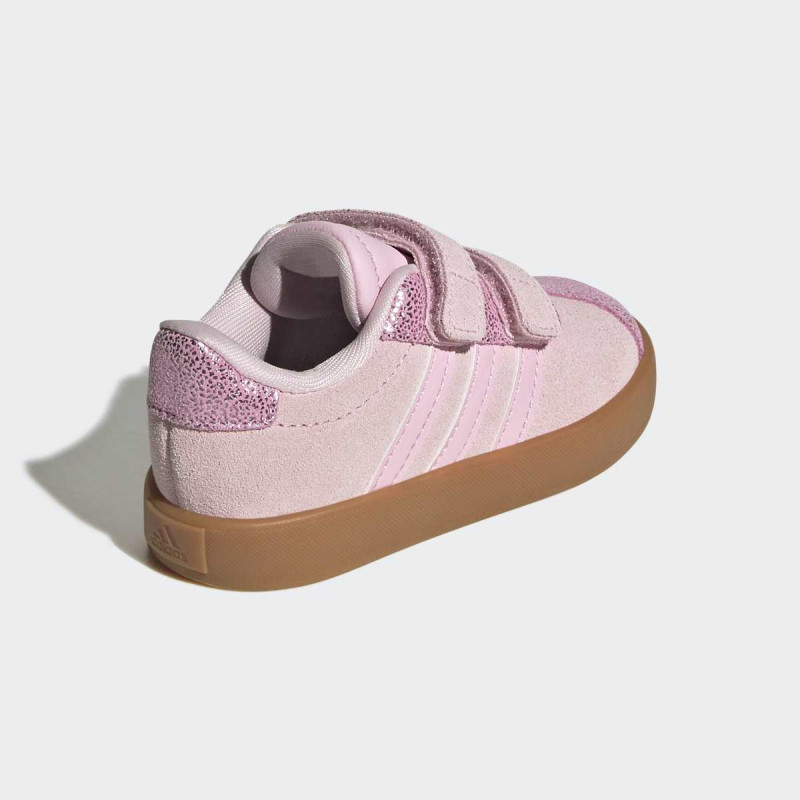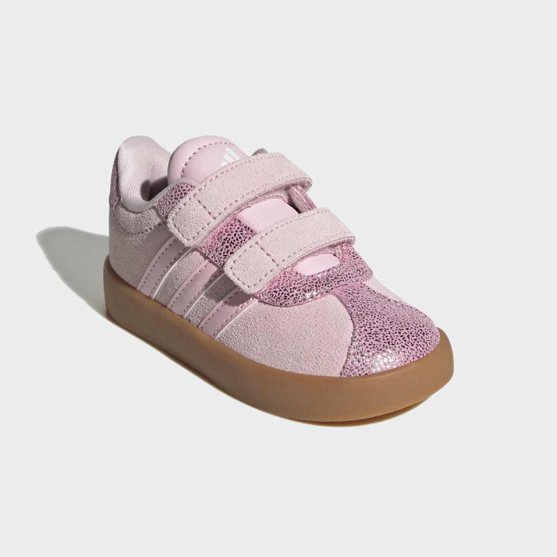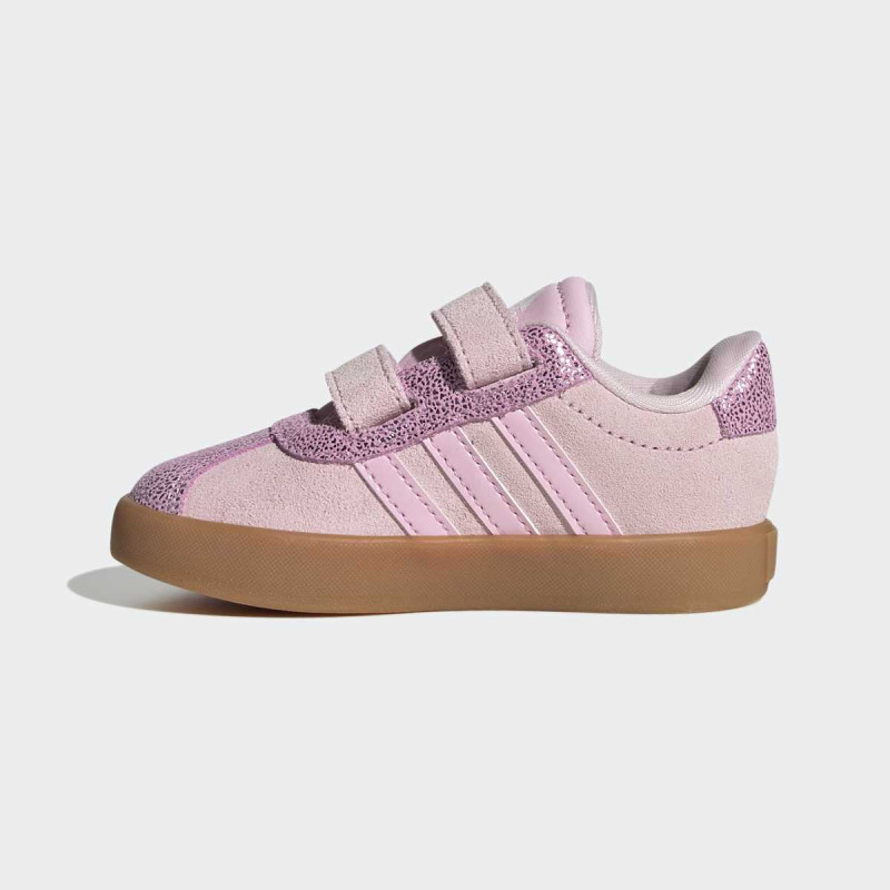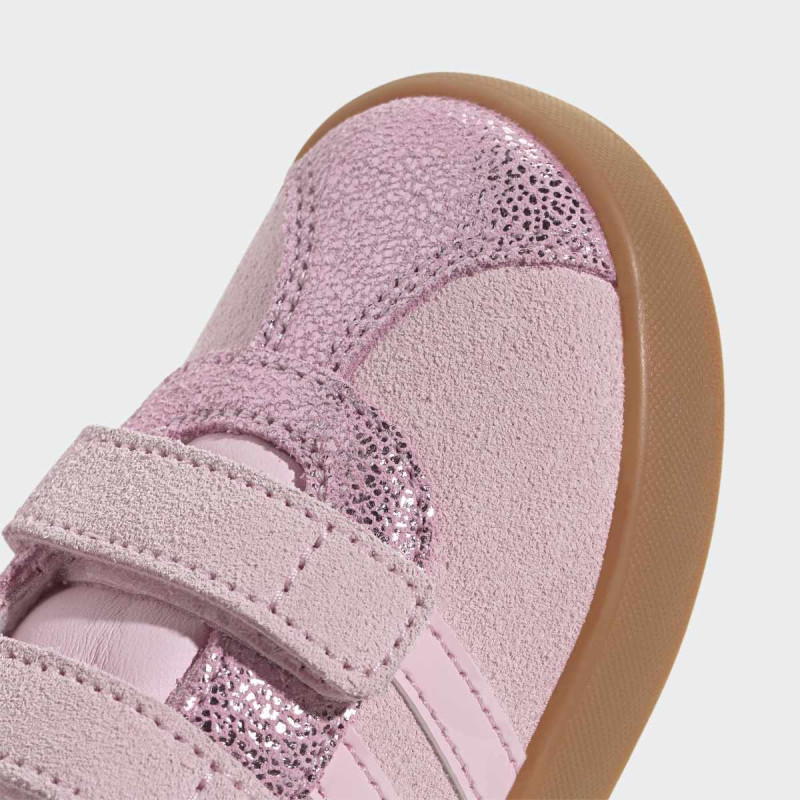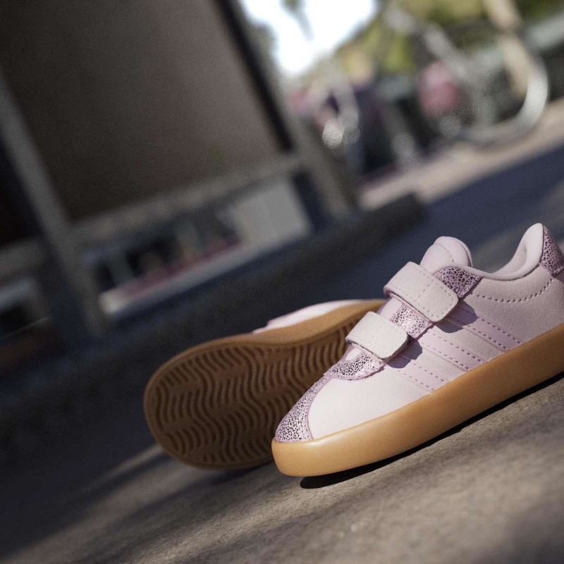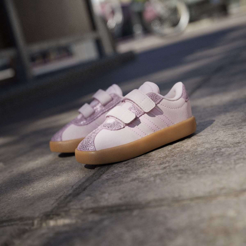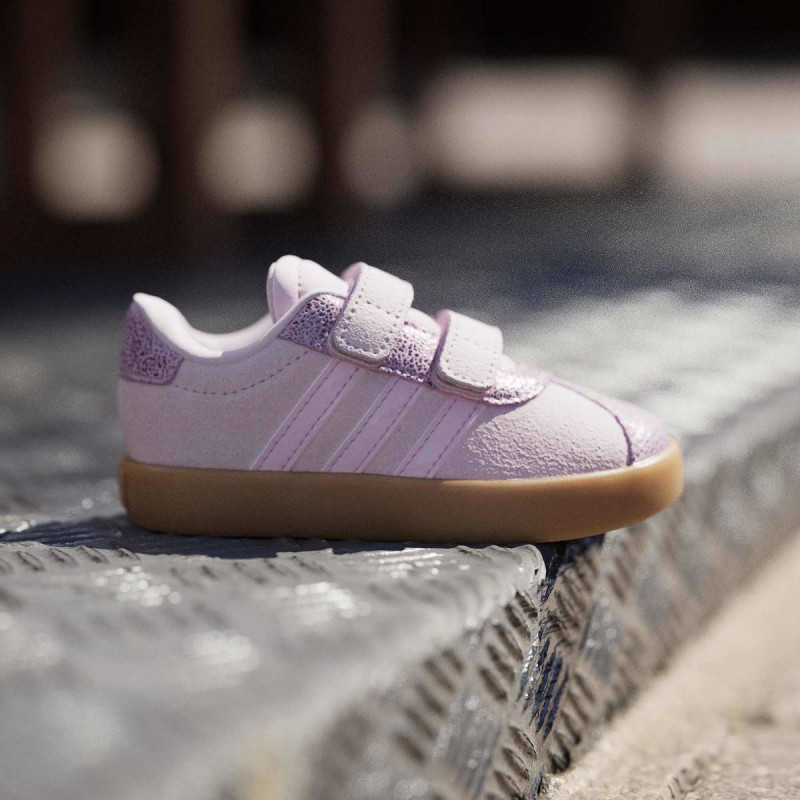VL Court 3.0 Shoes Infants donose T-Toe trend u verziji za najmlađe. Ove uniseks patike kombinuju synthetic leather gornji deo sa pravim suede toe cap i eyestay za dugotrajnost i izdržljivost. Non-marking gumeni cupsole pruža stabilnost, dok dve podesive hook-and-loop trake omogućavaju brzo i lako obuvanje, idealno za aktivne bebe. Stil i funkcionalnost u jednom – savršeno za prve korake u svetu adidas 3-Stripes.