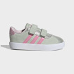 Ove Adidas VL Court 3.0 patike za bebe kombinuju stil i praktičnost za male istraživače. Inspirisane T-Toe trendom i preuzete iz adult modela, imaju sintetički kožni gornji deo, pravi suede na prstu i pojačanja, kao i podesive dve čičak trake za brzo i lako obuvanje. Gumeni đon koji ne ostavlja tragove pruža stabilnost, dok 3-Stripes detalji i sportski logo na jeziku unose prepoznatljiv Adidas dizajn. Savršene su za svakodnevnu igru i šetnje.