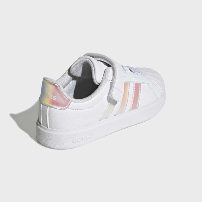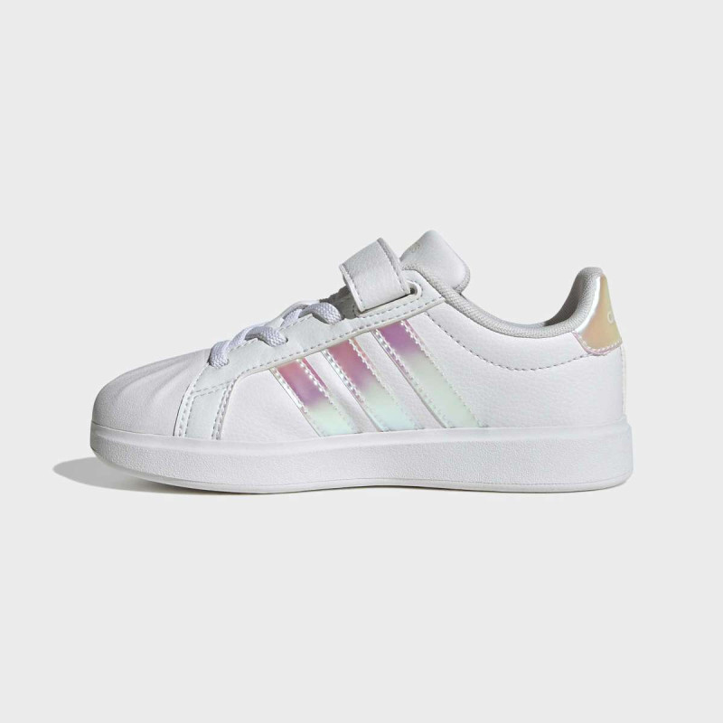 adidas Streettalk EL C patike za decu kombinuju klasični shell-toe stil sa praktičnim modernim detaljima. Sintetički gornji deo i tekstilna postava pružaju udobnost i prozračnost, dok gumeni shell-toe i đon osiguravaju izdržljivost i dobar grip. Elastične pertle i čičak traka omogućavaju lako obuvanje, čineći ih idealnim za igru i svakodnevne avanture. Šivene 3-pruge i logo na peti dodaju autentičan adidas izgled.