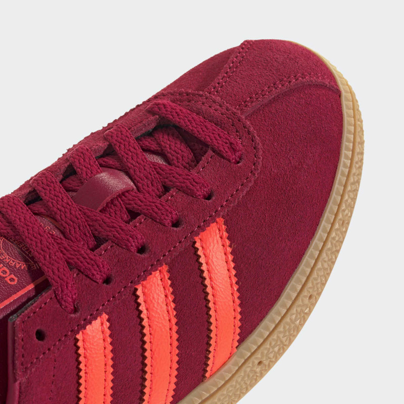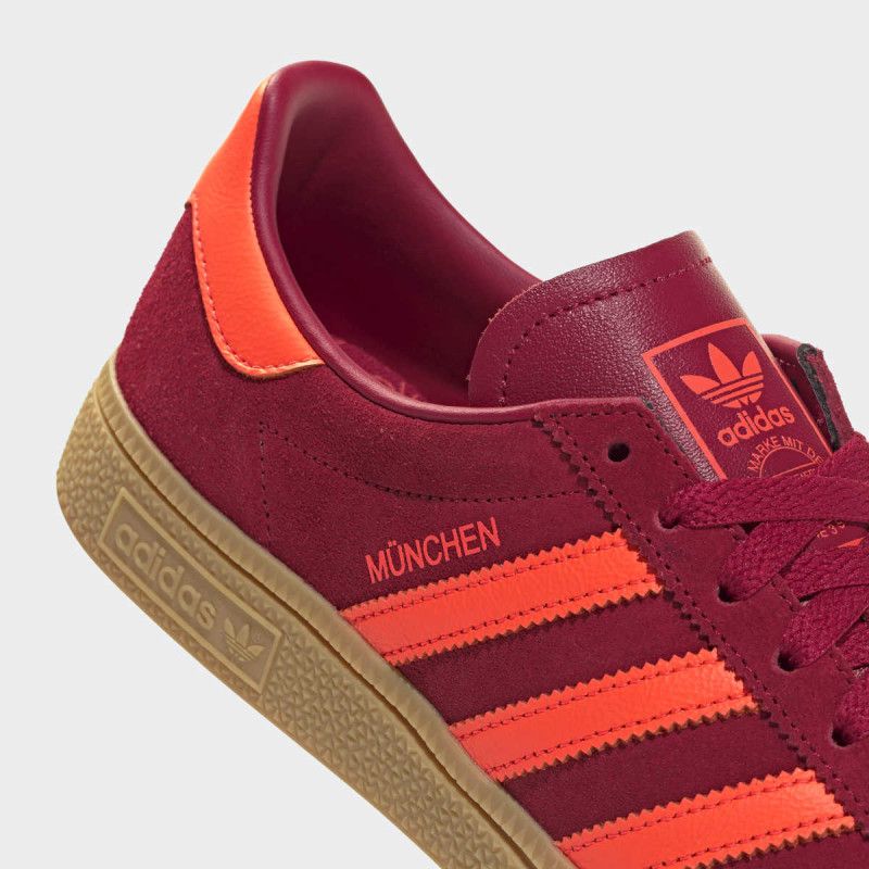 adidas MUENCHEN W je retro lifestyle patika sa arhivskim šarmom i modernim detaljima. Spoj kože i gumiranog đona omogućava udobnost i dugotrajnost, dok boje i detalji ističu jedinstven streetwear stil. Model u nijansi team victory red / solar red pruža vizuelno upečatljiv izgled, idealan za casual i urbane outfite.