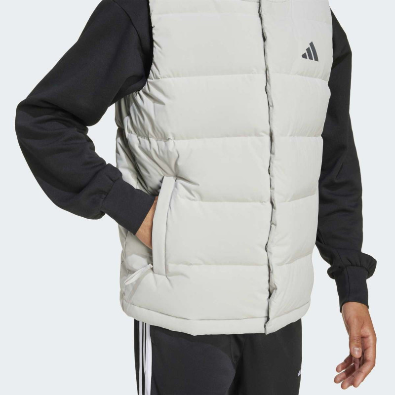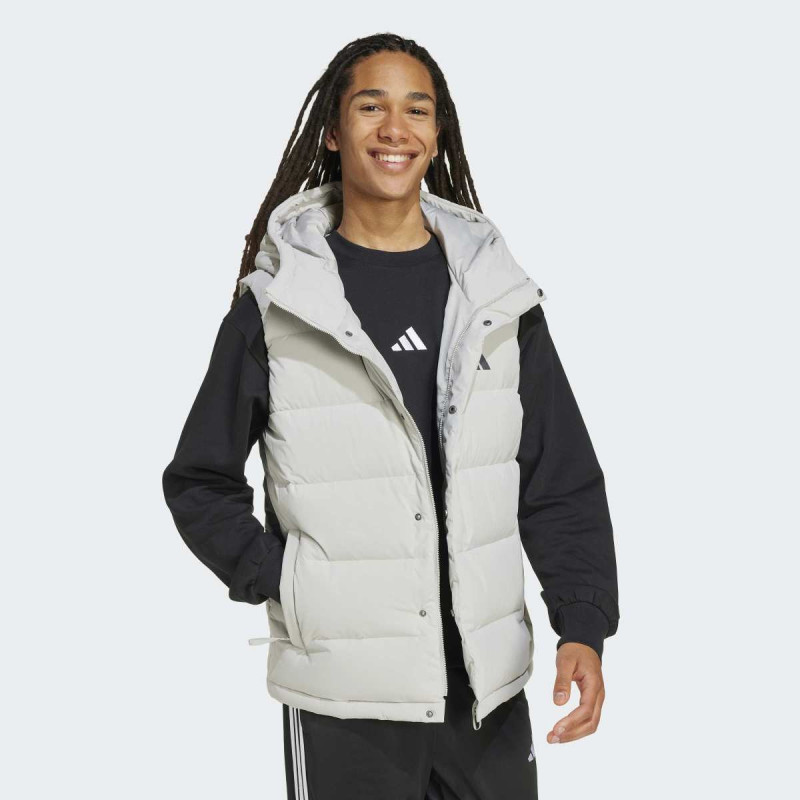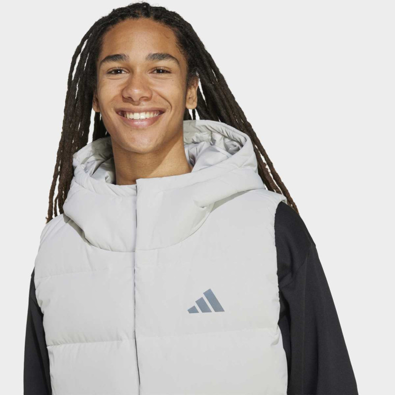 Adidas Helionic CLIMAWARM Hooded Down Vest je idealan za hladnije dane, kombinujući stil i funkcionalnost. Punjenje od 80/20 patke zadržava toplotu i pruža izuzetnu udobnost, dok materijal otporan na vetar i vodu štiti od spoljašnjih uslova. Grown-on kapuljača sa elastikom i drawcord omogućavaju dodatnu zaštitu, a zipovani džepovi čuvaju vaše stvari sigurno. Vest ima čist, klasičan dizajn sa 3-Bar logoom na grudima, što je čini savršenim izborom za svakodnevne aktivnosti na otvorenom.