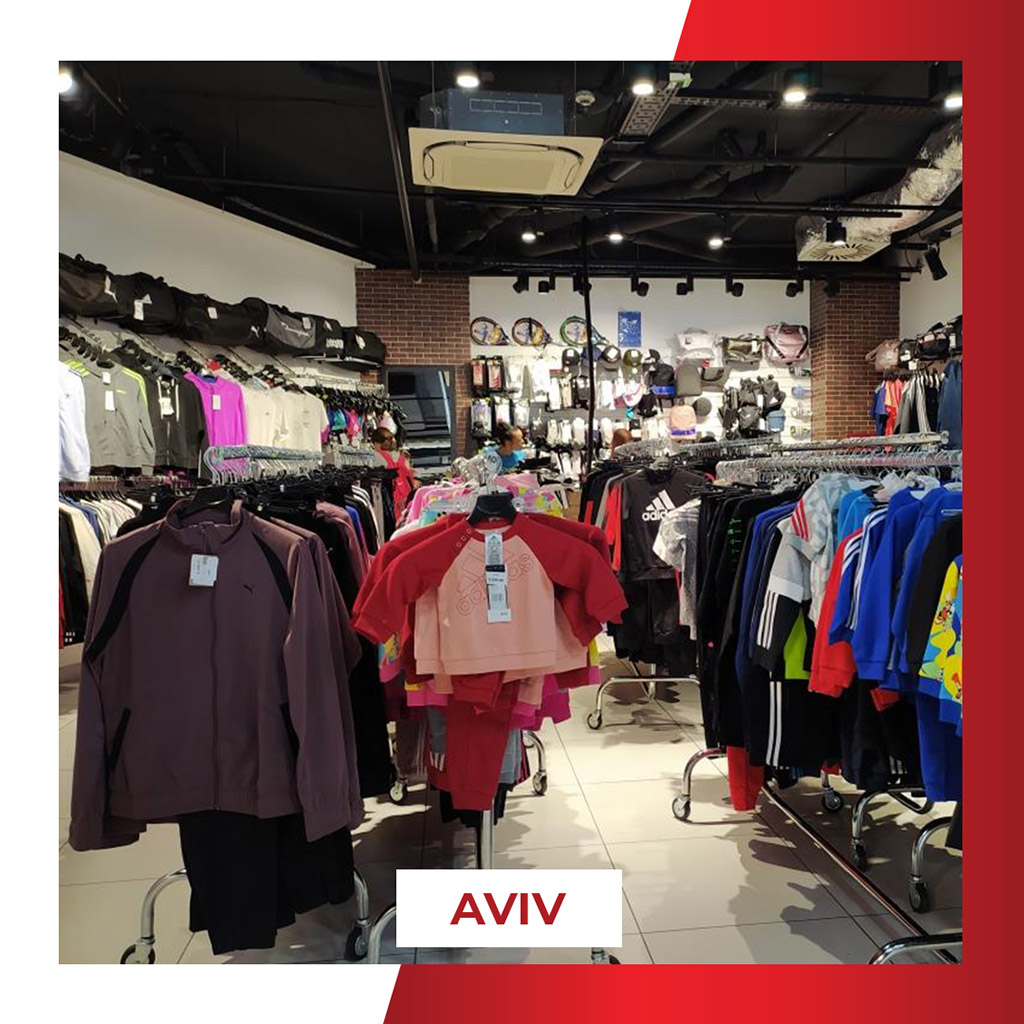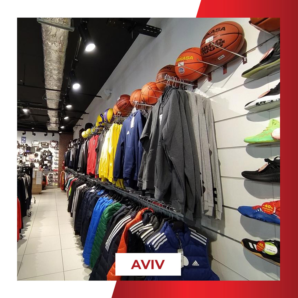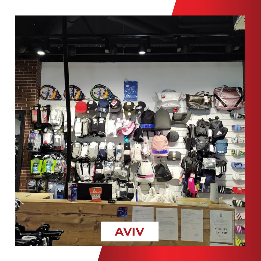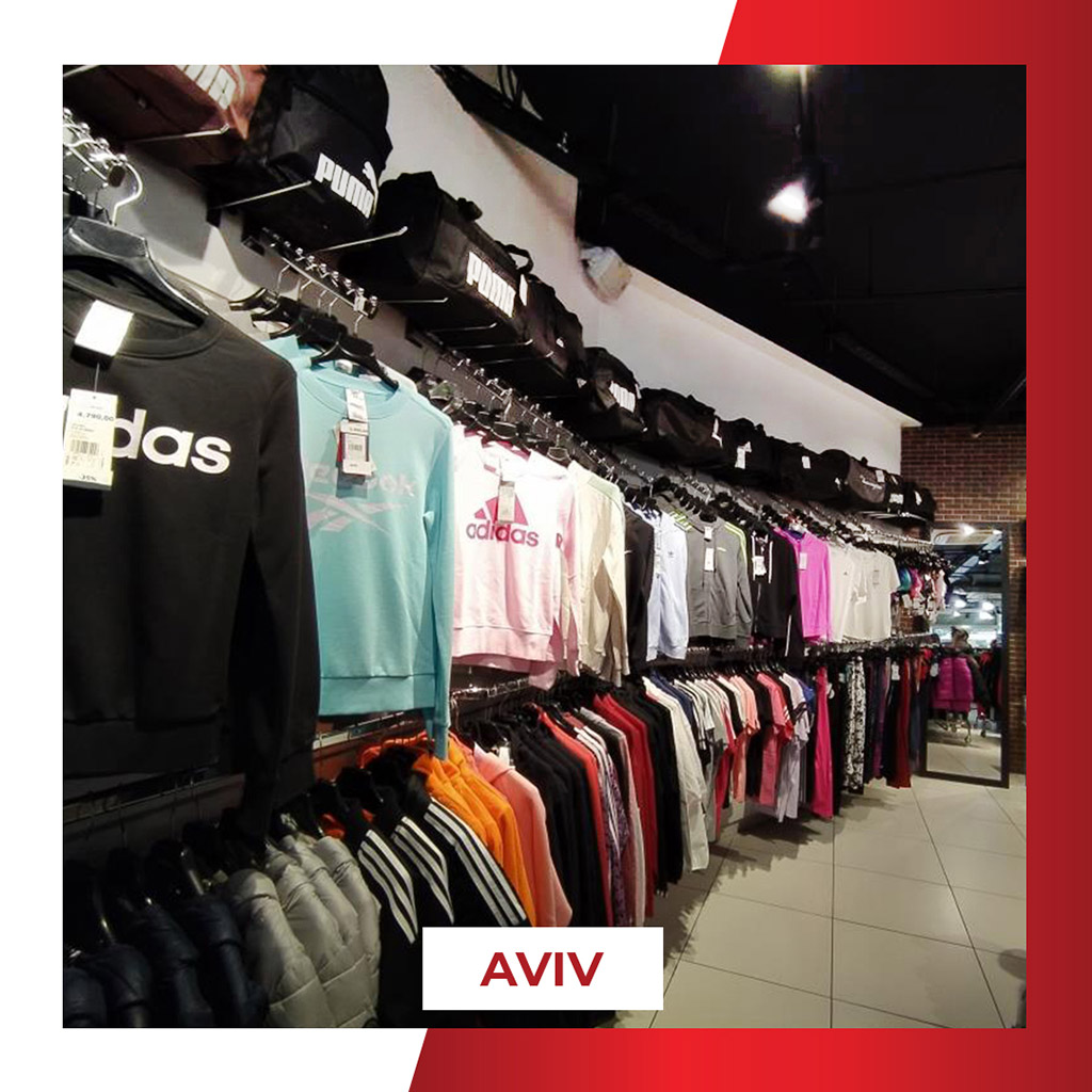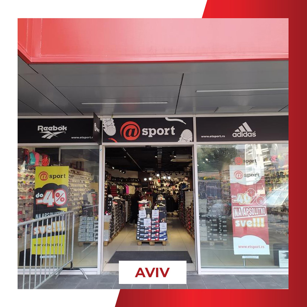 Radnja A Sport Aviv nalazi se u tržnom centru Aviv Park Zvezdara, u otvorenom delu, na centralnom platou sa sadržajima za posetioce, i nudi raznovrsnu multibrend ponudu sportske i lifestyle obuće i odeće uz česte sezonske akcije.