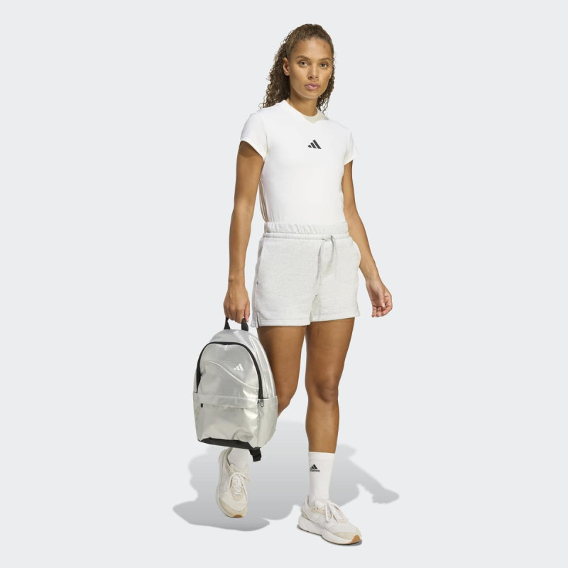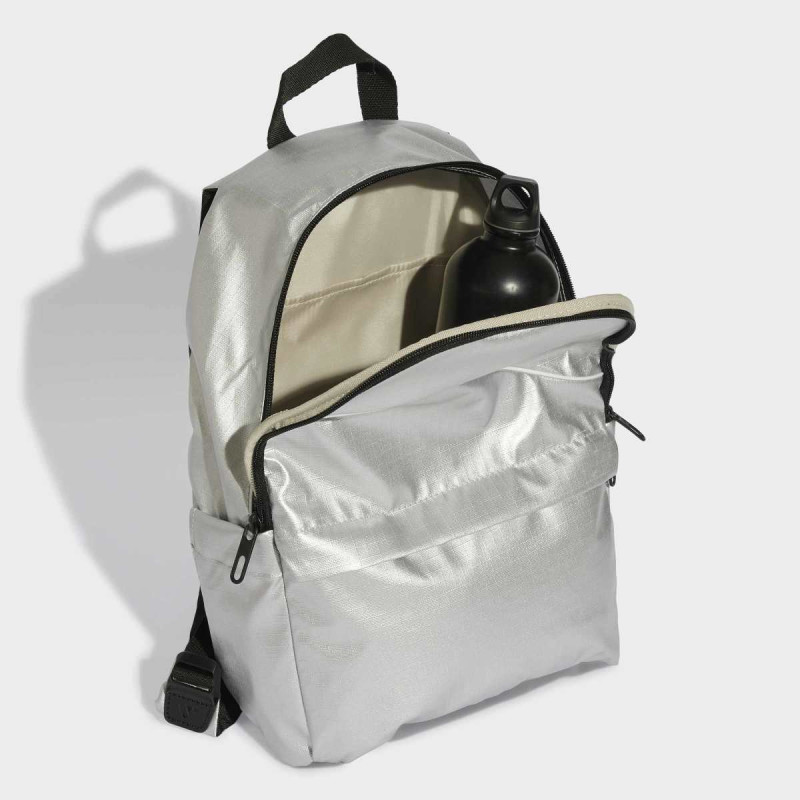 Adidas Glow Backpack kombinuje stil i funkcionalnost za žene koje žele upečatljiv aksesoar i praktičan ranac u jednom. Sa metalik ripstop tkaninom, istaknutim 3 bar logoom i višestrukim džepovima, nudi dovoljno prostora za sve vaše stvari. Podesive naramenice i gornja ručka omogućavaju udobno nošenje, dok detalji poput ženskih obloga i svetlucavog dizajna dodaju moderan estetski pečat. Ovaj ranac je savršen za sport, gradsku upotrebu ili svakodnevne aktivnosti, pri čemu je izrađen od recikliranih materijala.